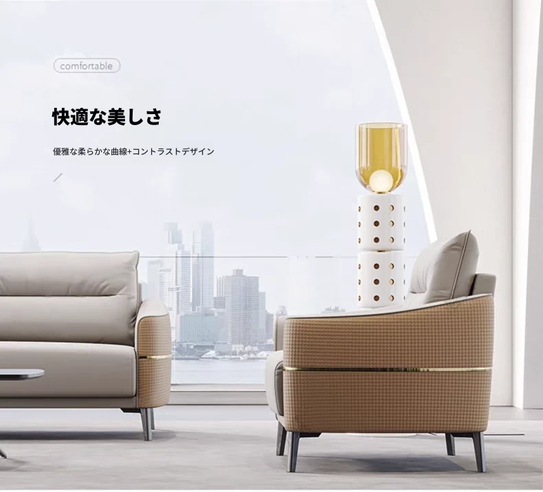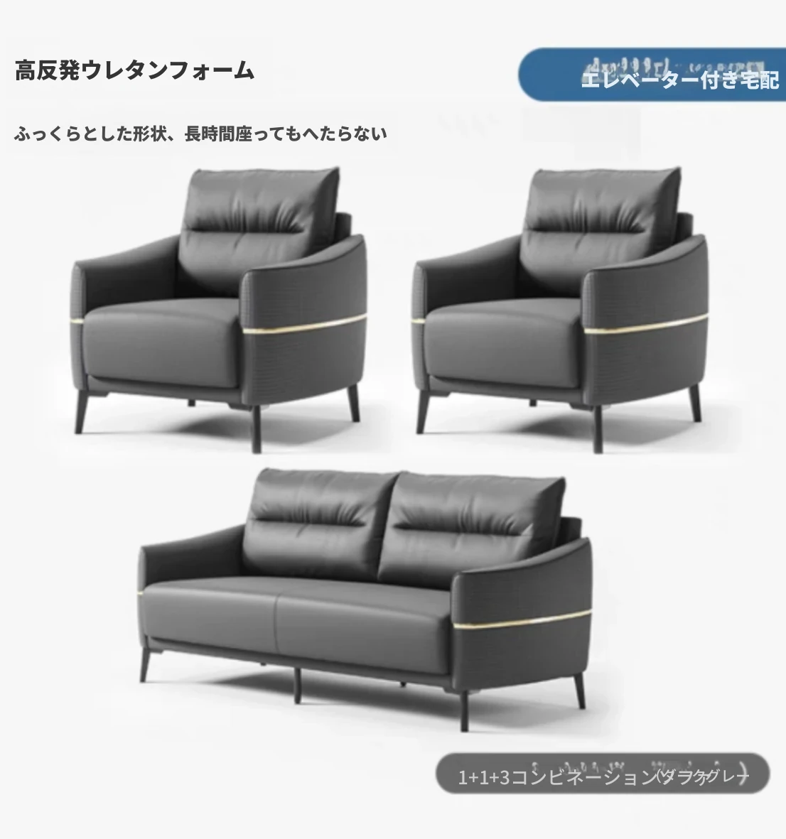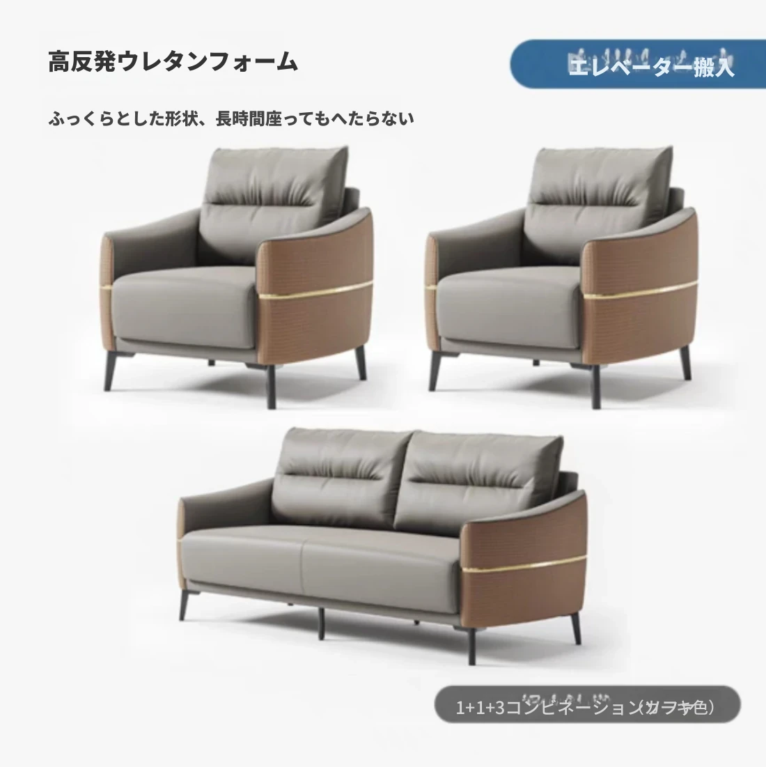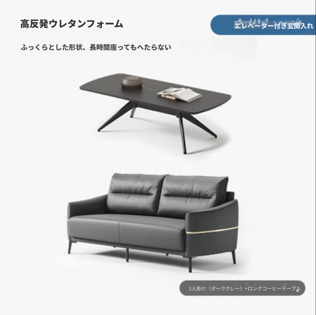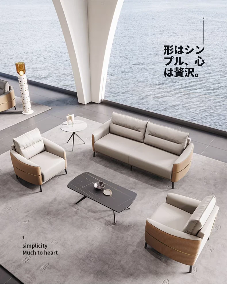 モダンでスタイリッシュなオフィスソファセット - シンプルなデザインでビジネス会議や休憩スペースに最適!おしゃれなコーヒーテーブル付きで、快適な接客を実現。あなたのオフィスをランクアップ!