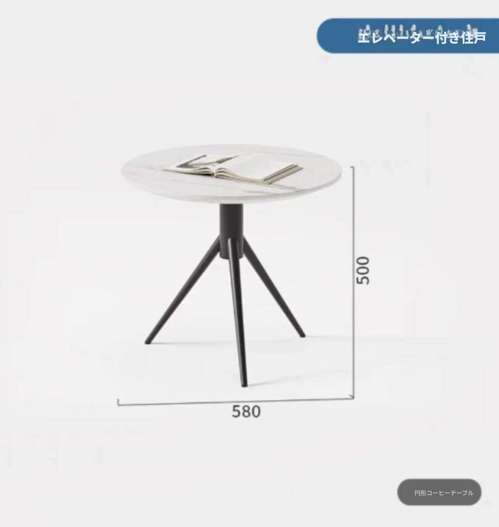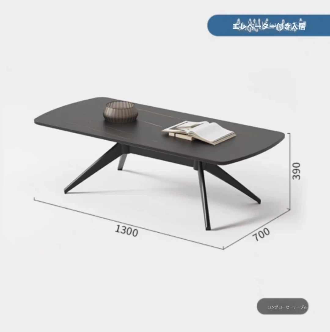1+1+3+ロングテーブル岩板ダークグレー+丸テーブル