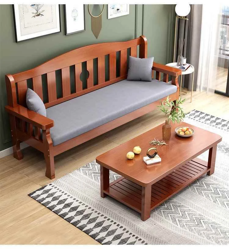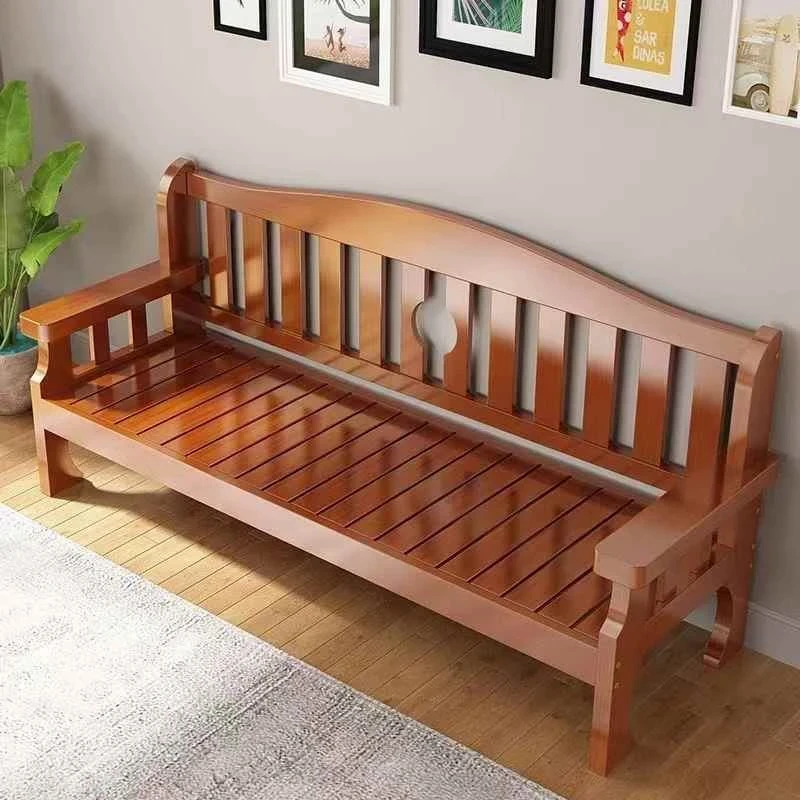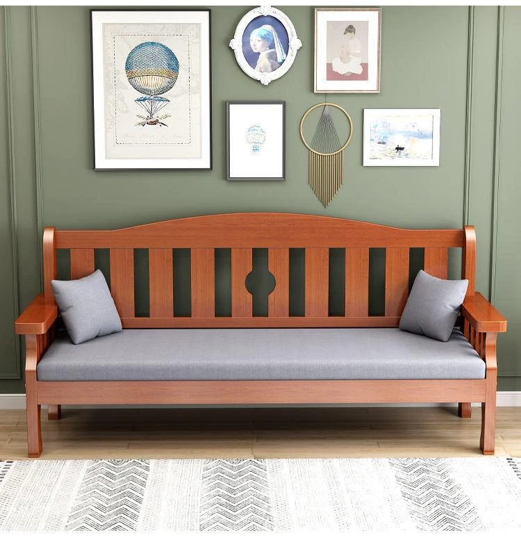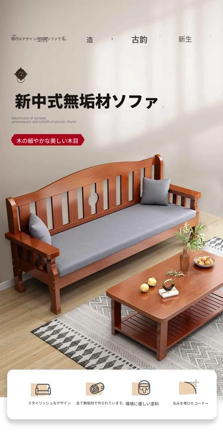 現代的なシンプルデザインの無垢材ソファ!小型住宅に最適な欧風スタイルで、バルコニーや寝室、リビングにもぴったり。3人掛け・4人掛けの背もたれ付きロングベンチソファで、快適なひとときをお楽しみください!