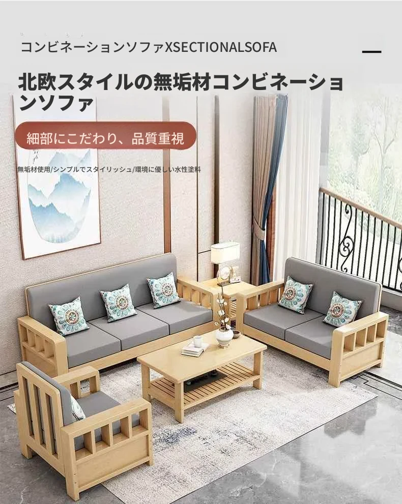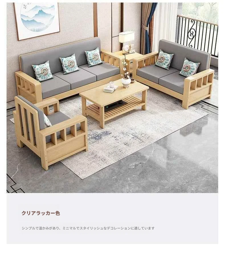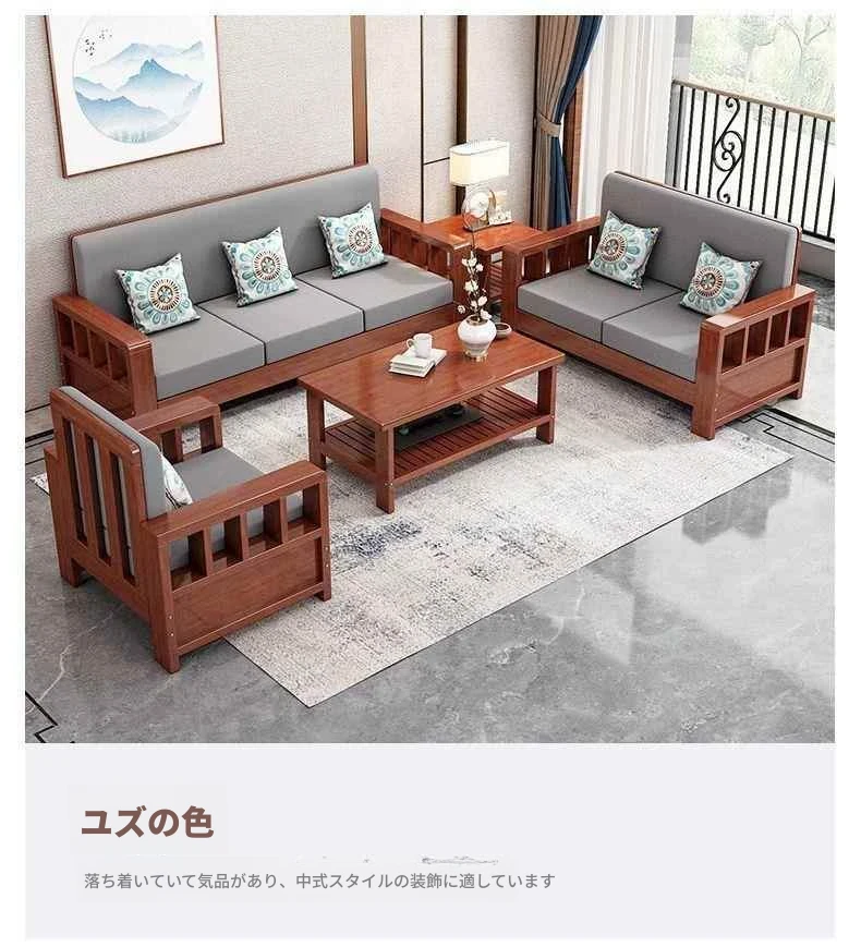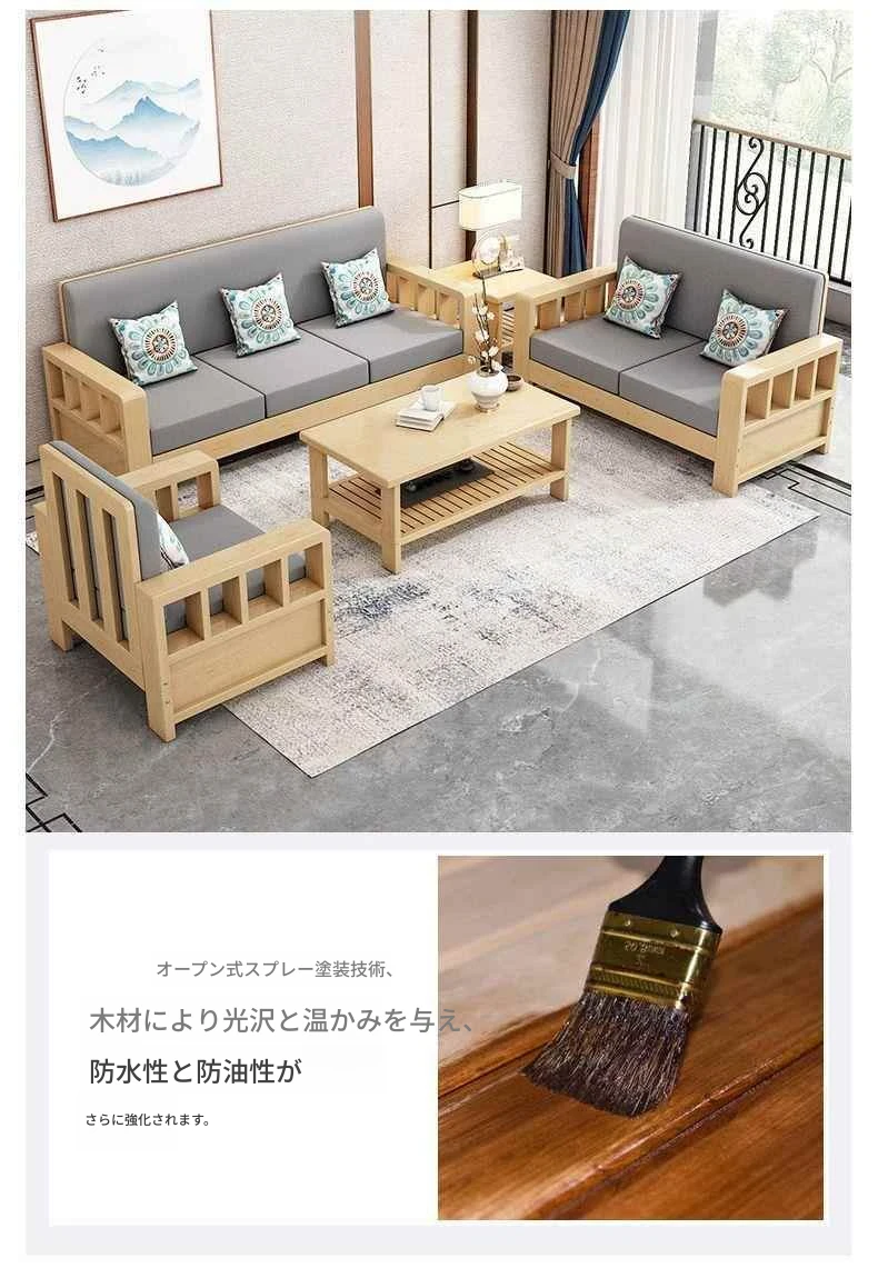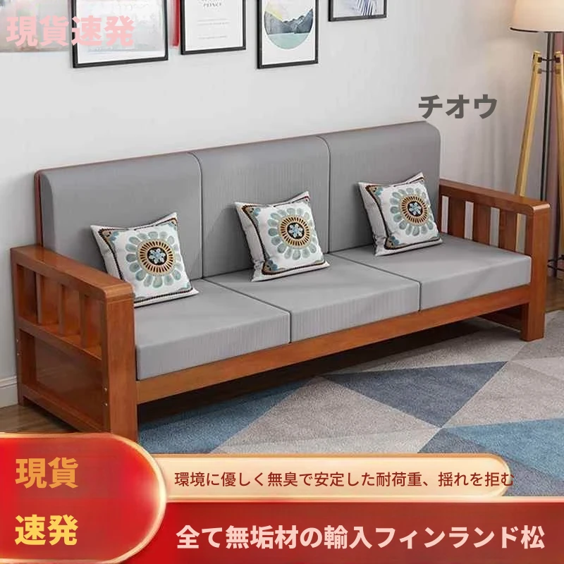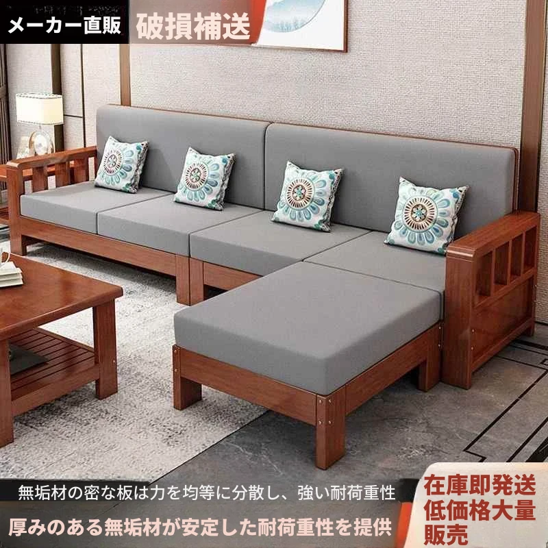 シンプルモダンな無垢材ソファセット 小型リビングに最適 コーナー・フェイスタイプのパイン材ソファ 新中式デザイン お手頃価格でスタイリッシュな空間を演出!
