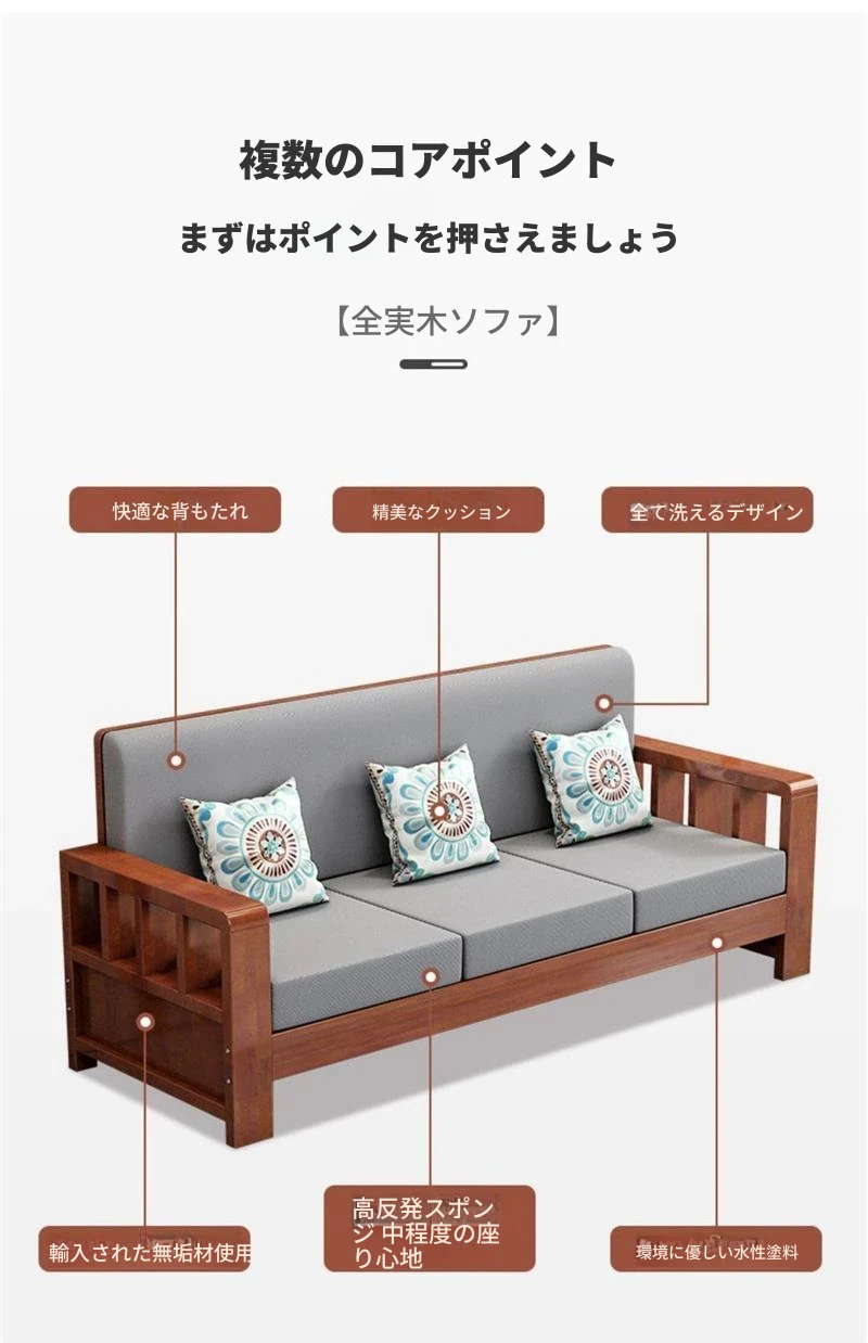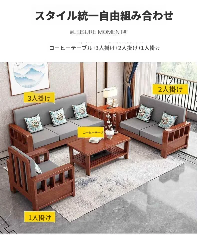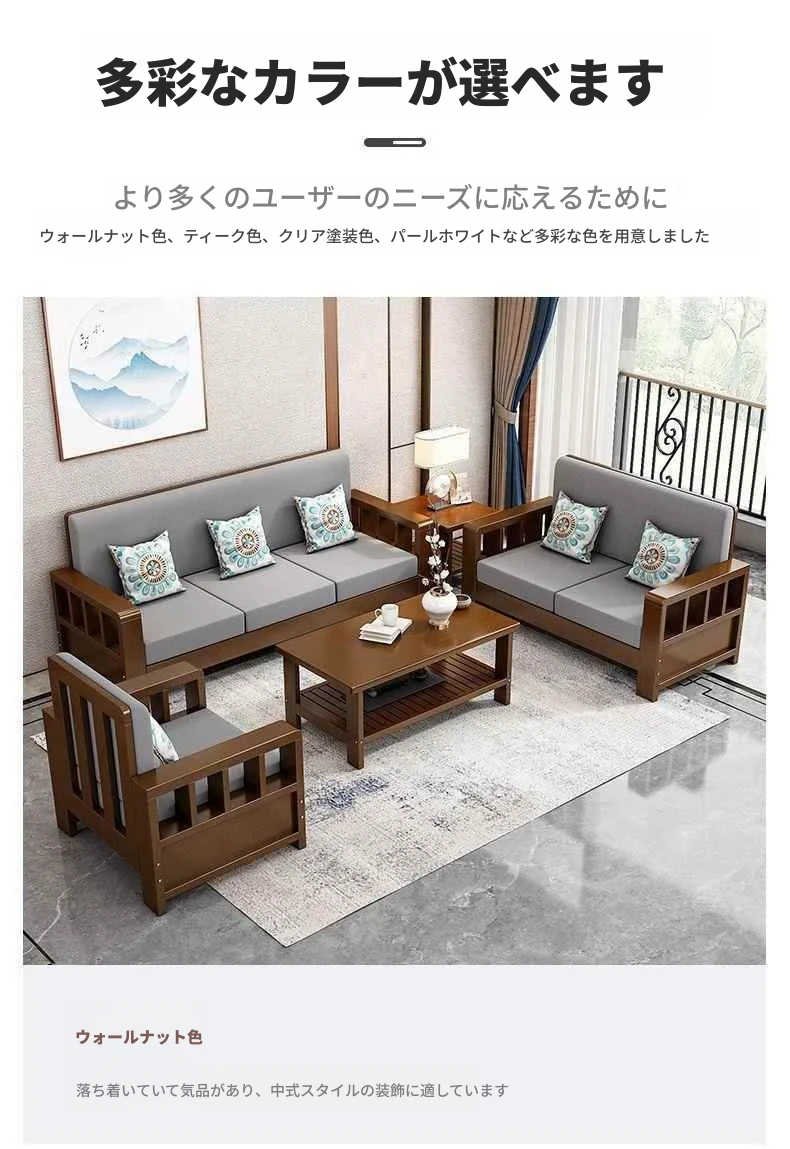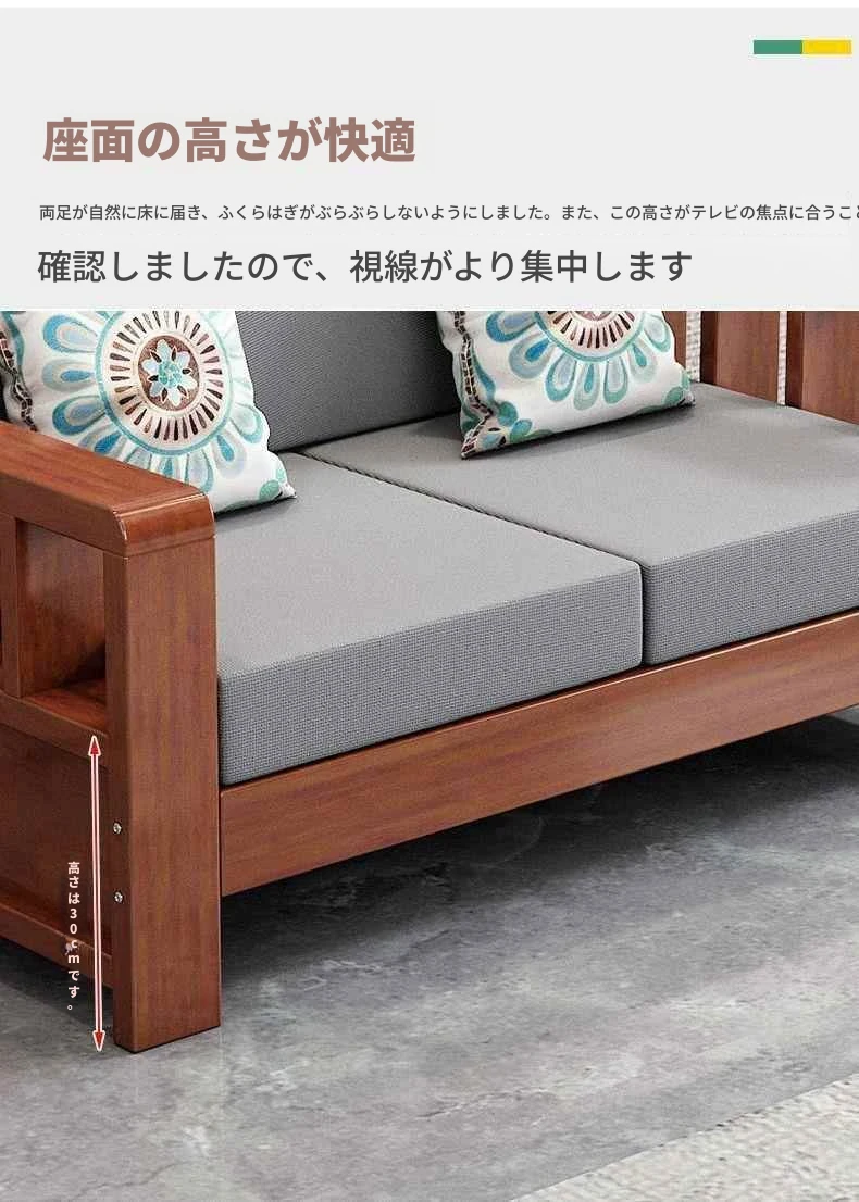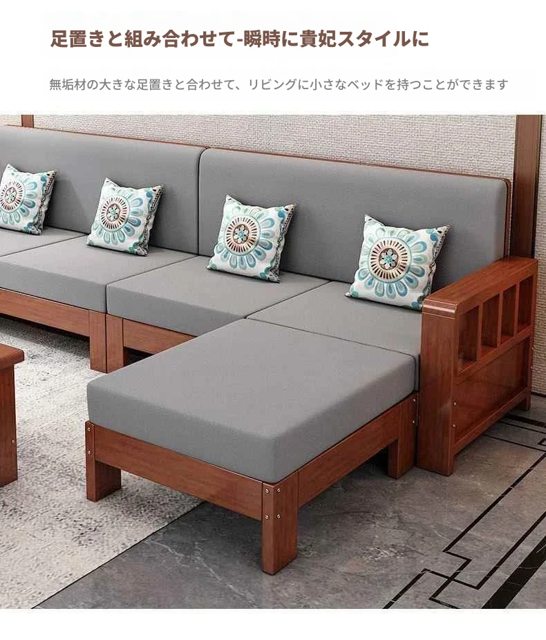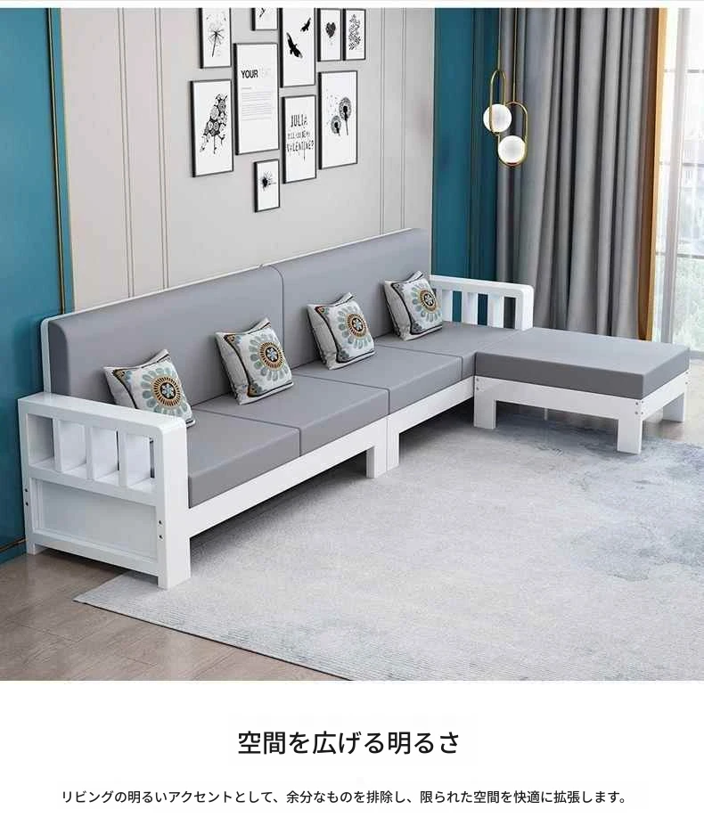 シンプルモダンな無垢材ソファセット 小型リビングに最適 コーナー・フェイスタイプのパイン材ソファ 新中式デザイン お手頃価格でスタイリッシュな空間を演出!