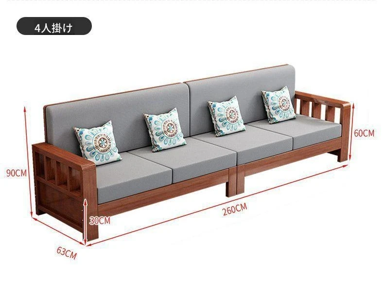 【無垢材】4人用+貴妃ソファ