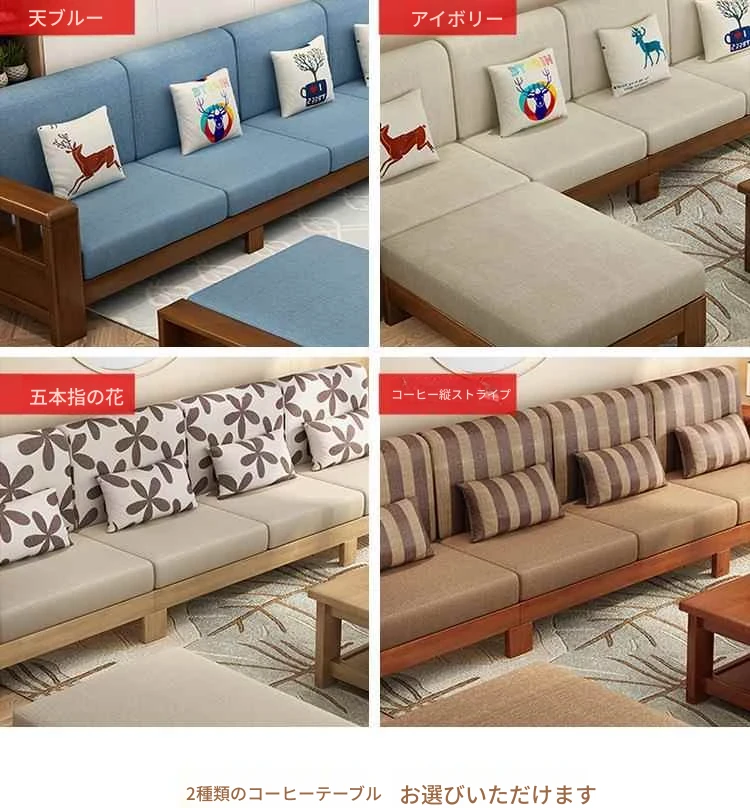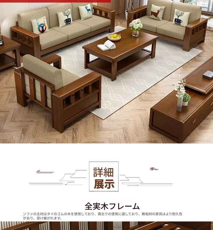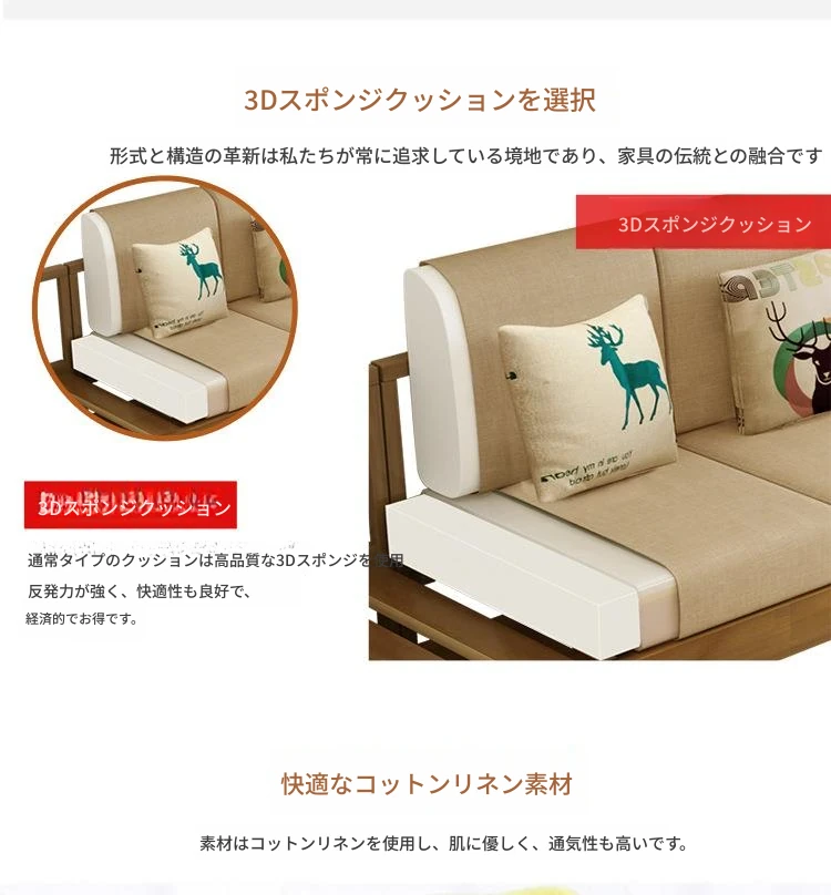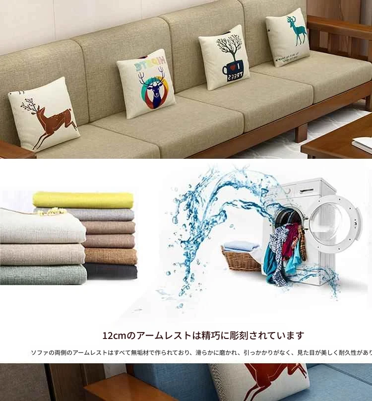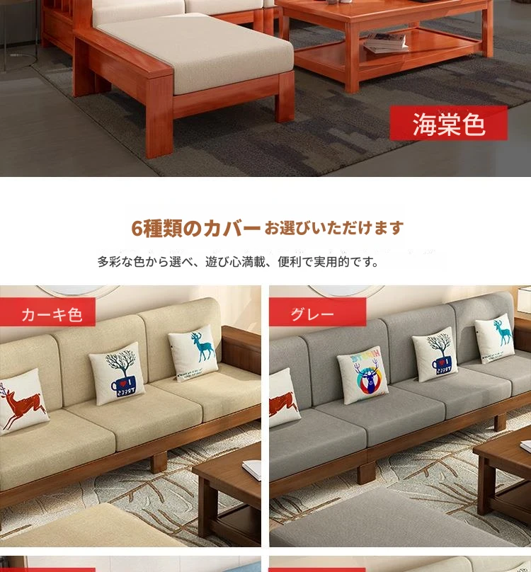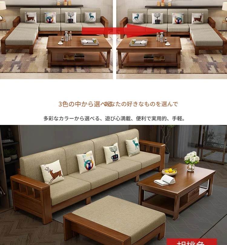 モダンな中華風デザインの無垢材ソファセット - スタイリッシュなコーナー布製ソファ、リビングルームにぴったりのコンパクト家具!小さなスペースでも大活躍!