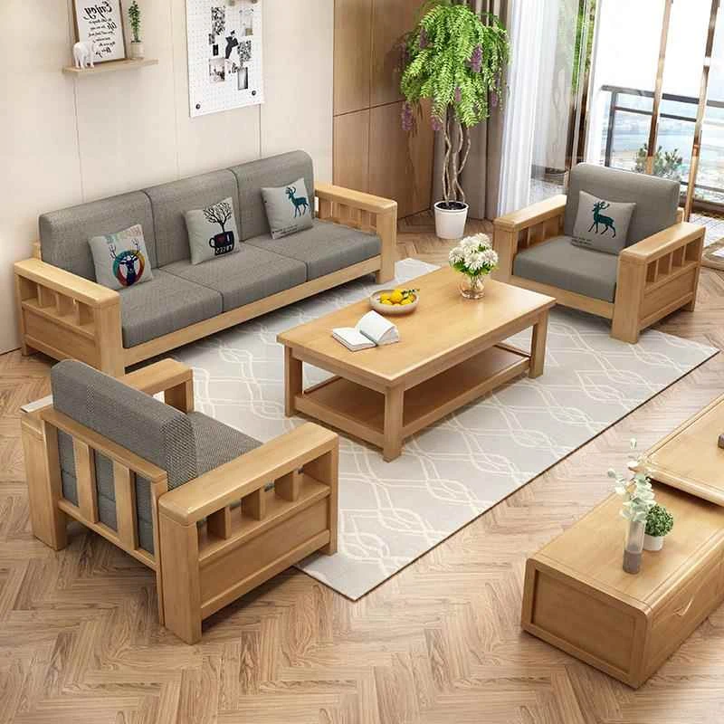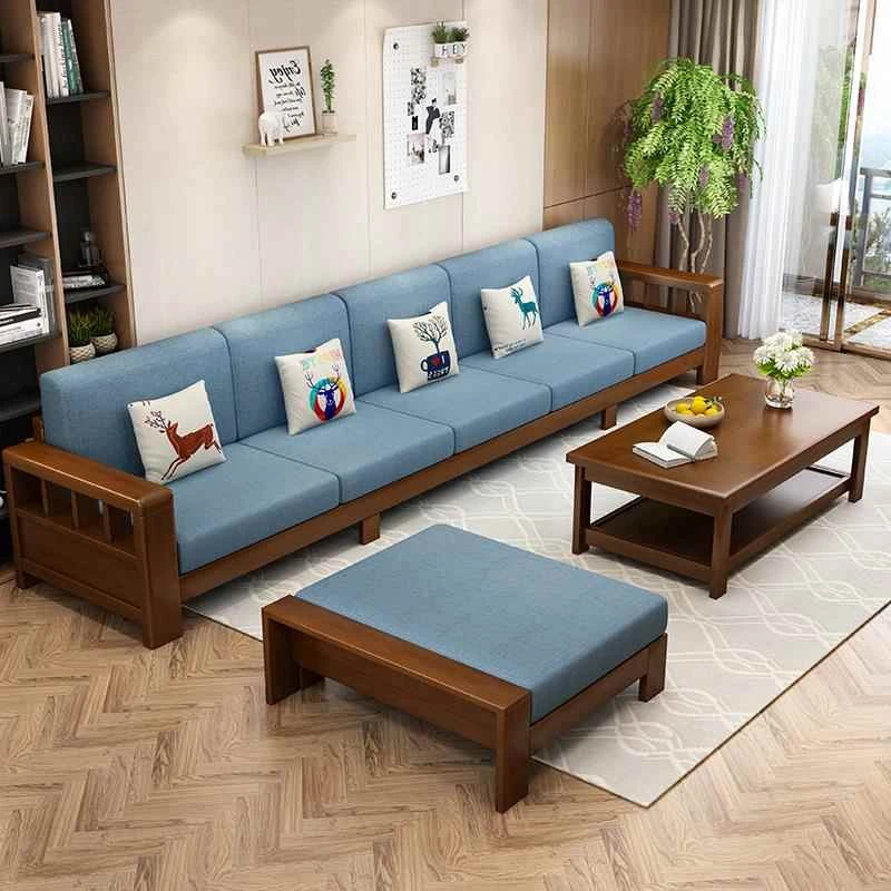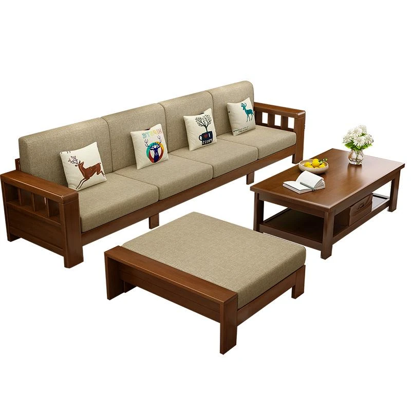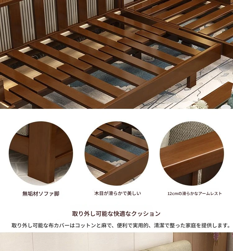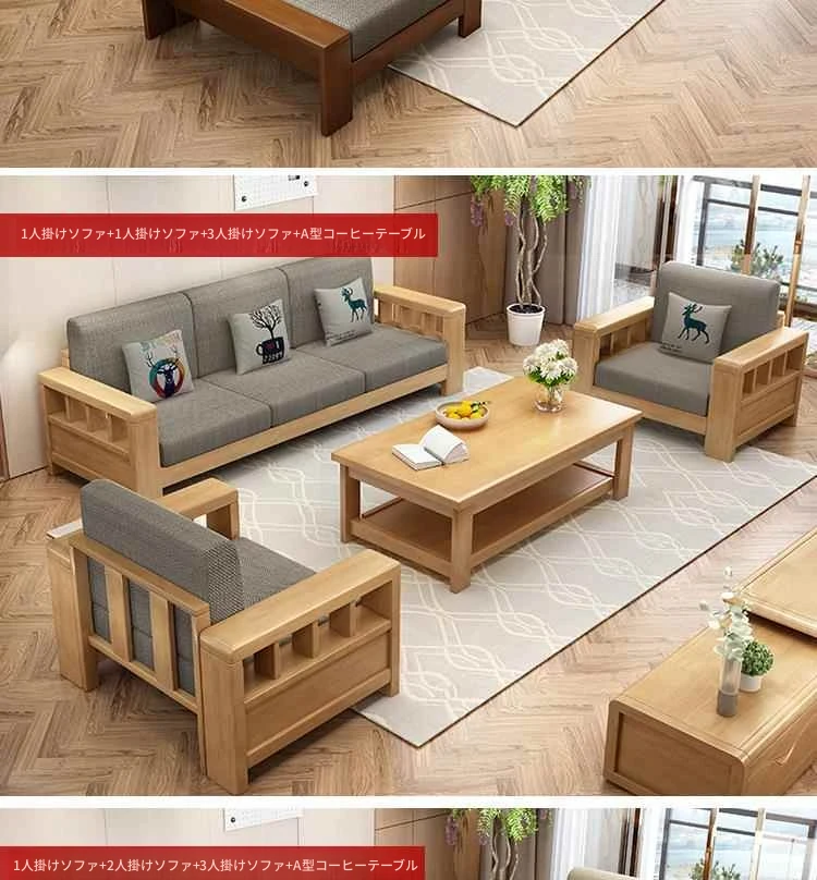 モダンな中華風デザインの無垢材ソファセット - スタイリッシュなコーナー布製ソファ、リビングルームにぴったりのコンパクト家具!小さなスペースでも大活躍!