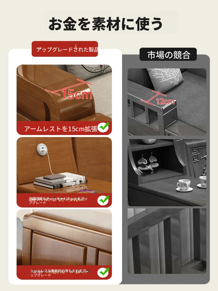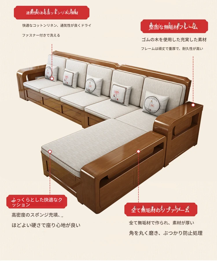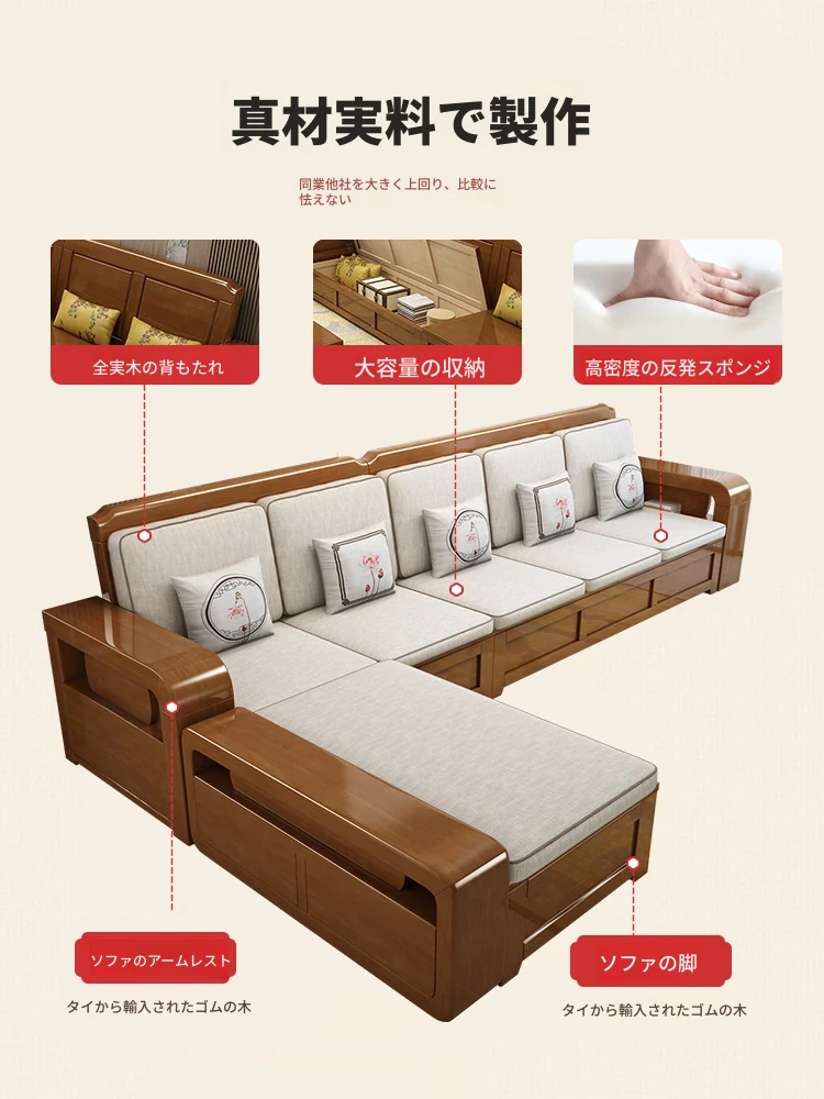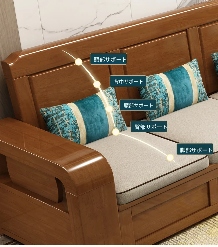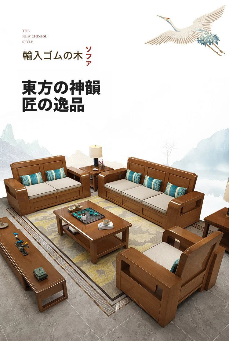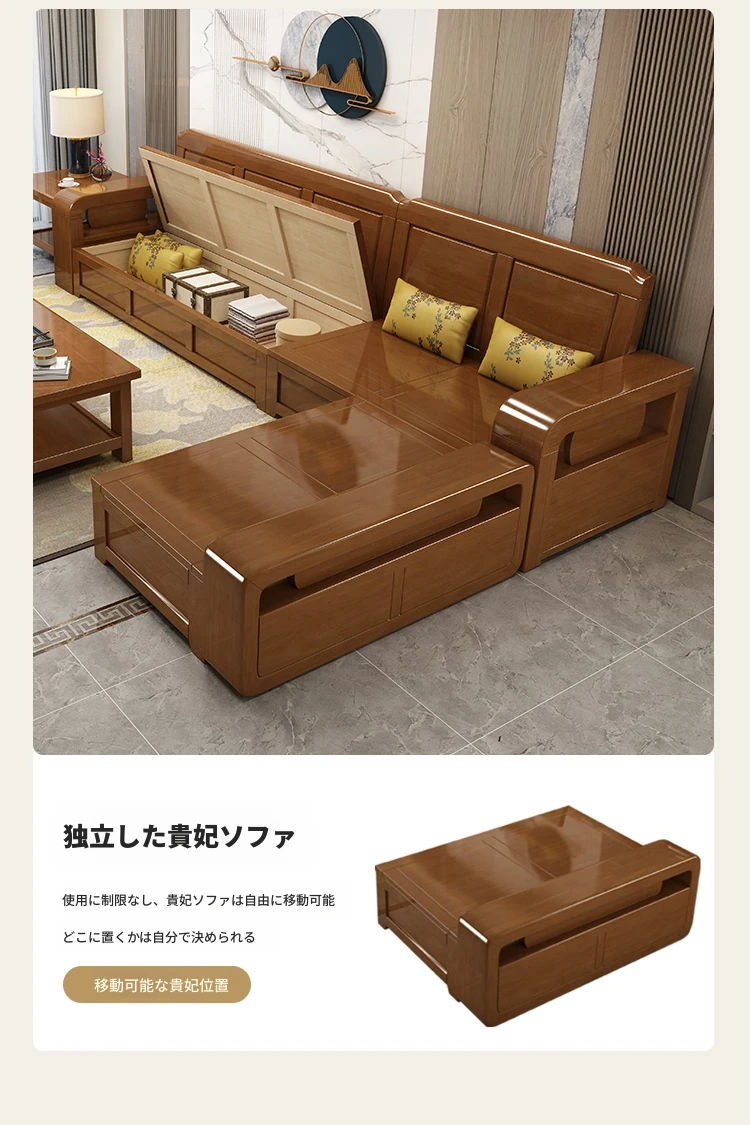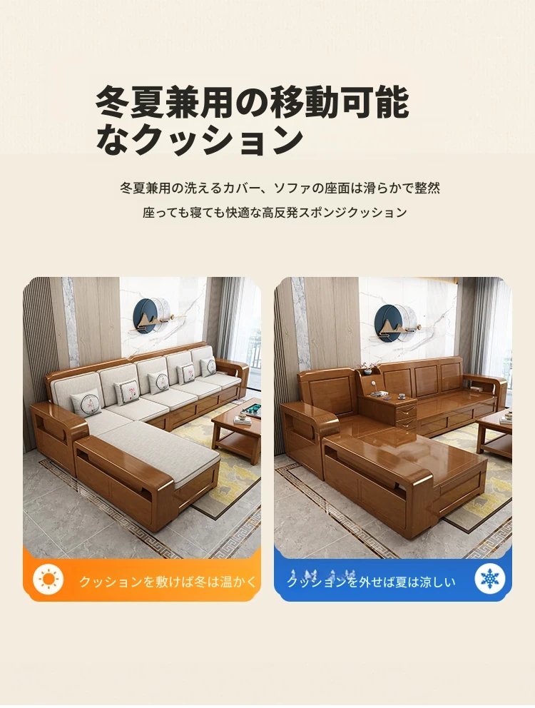 全実木製ソファ|モダンシンプルデザイン|夏冬兼用の新中式|小型収納家具|おしゃれなリビングに最適!高品質の無垢材で作られた、心地よい居住空間を実現します。