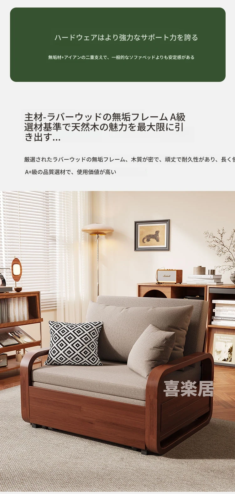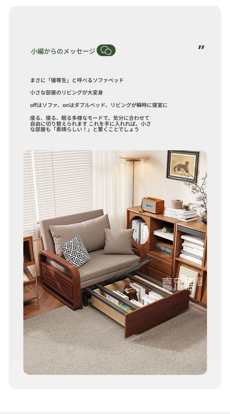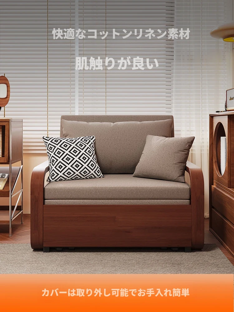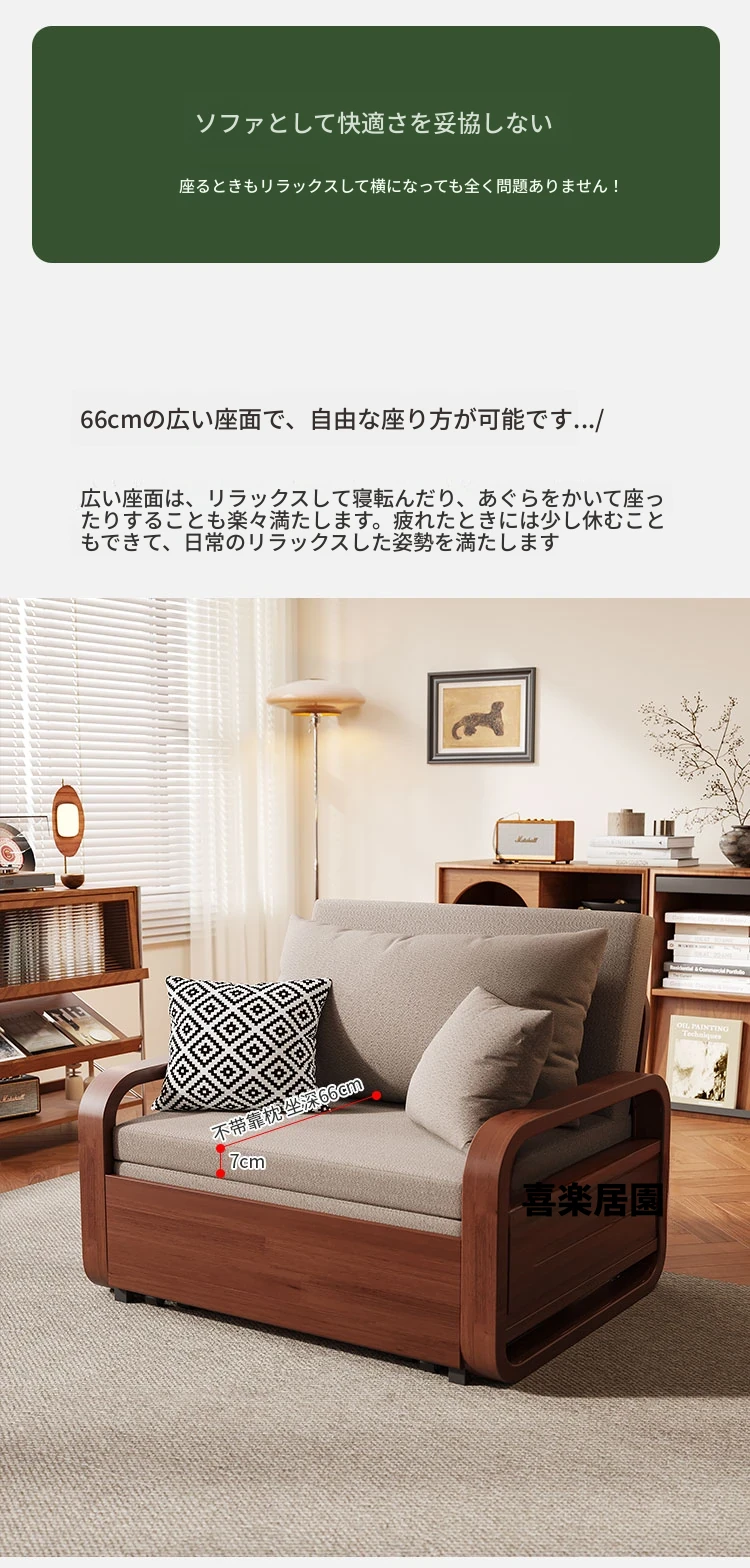 折りたたみ式の無垢材ソファベッド - シングルタイプの多機能デザイン!小型住宅や書斎、バルコニーに最適。お昼寝やリラックスタイムにぴったりのスライド式、伸縮可能なスタイルで快適さを提供します!