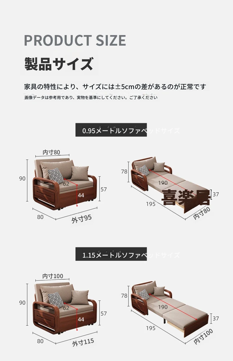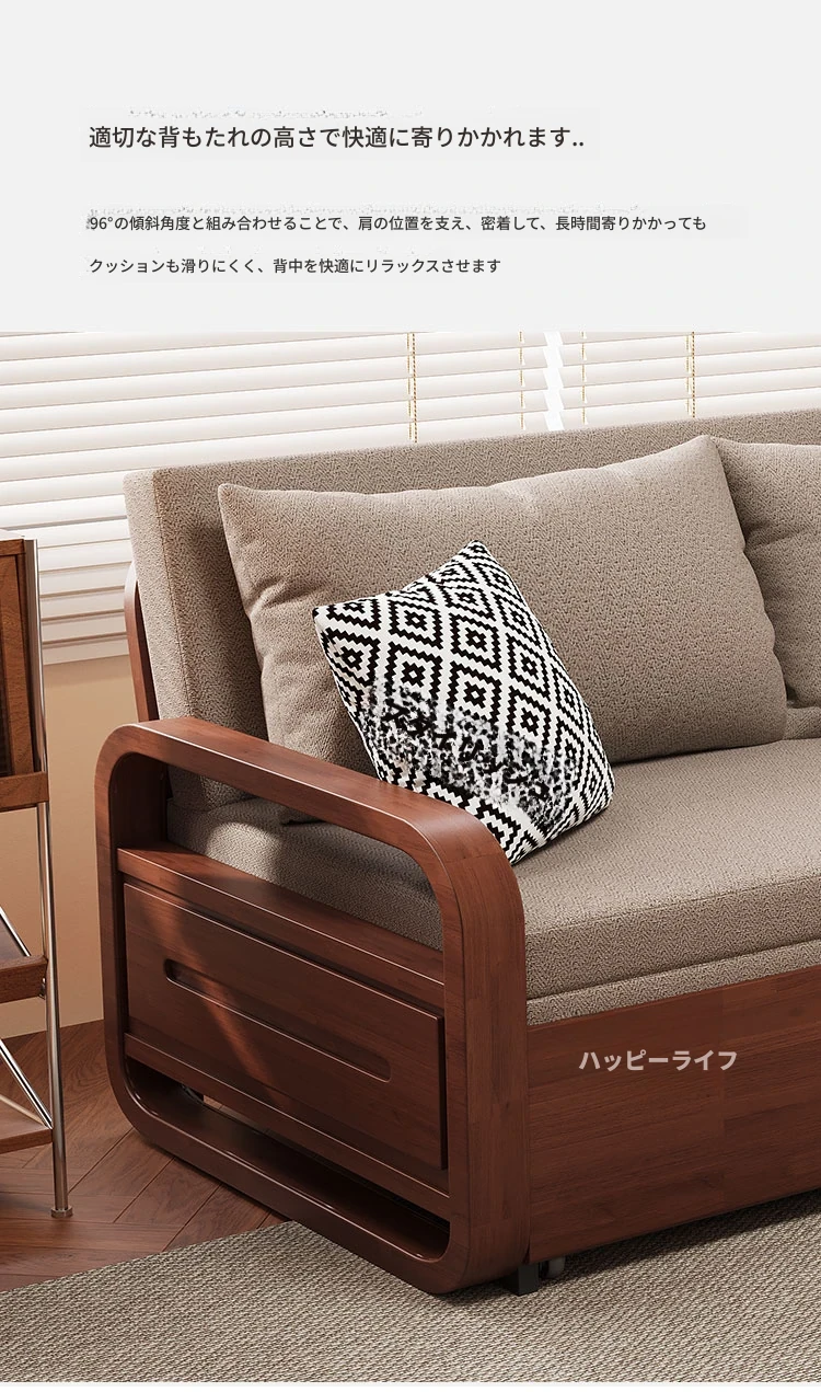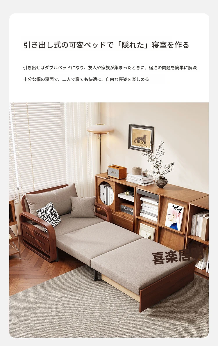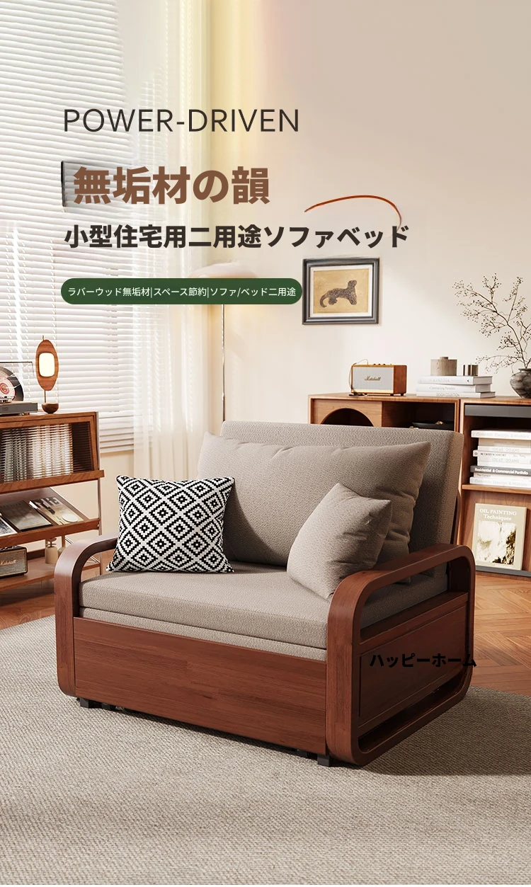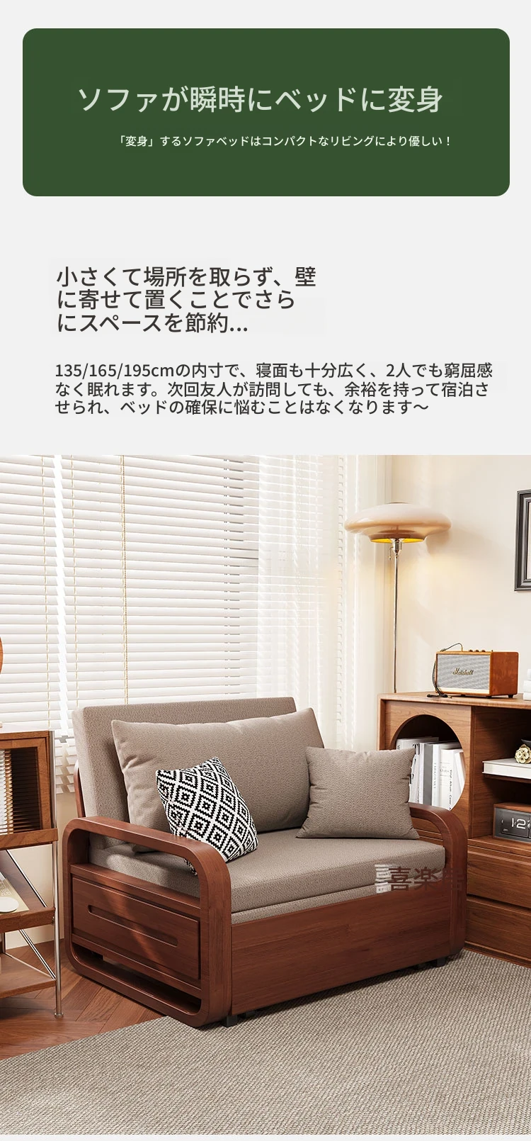 折りたたみ式の無垢材ソファベッド - シングルタイプの多機能デザイン!小型住宅や書斎、バルコニーに最適。お昼寝やリラックスタイムにぴったりのスライド式、伸縮可能なスタイルで快適さを提供します!