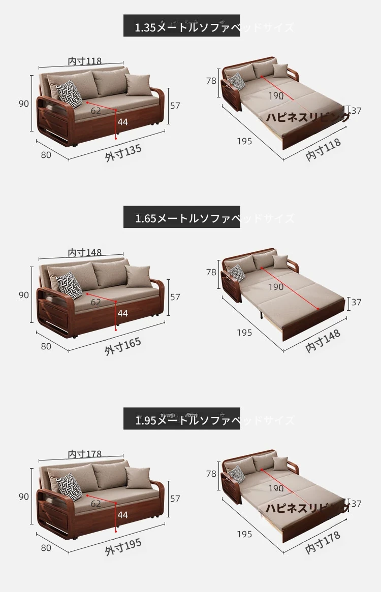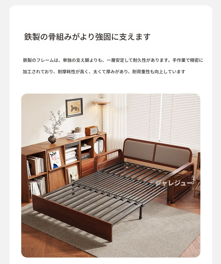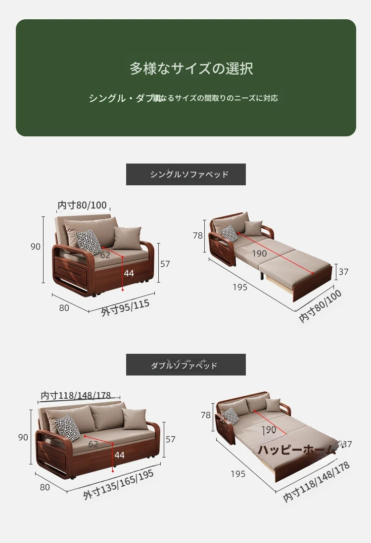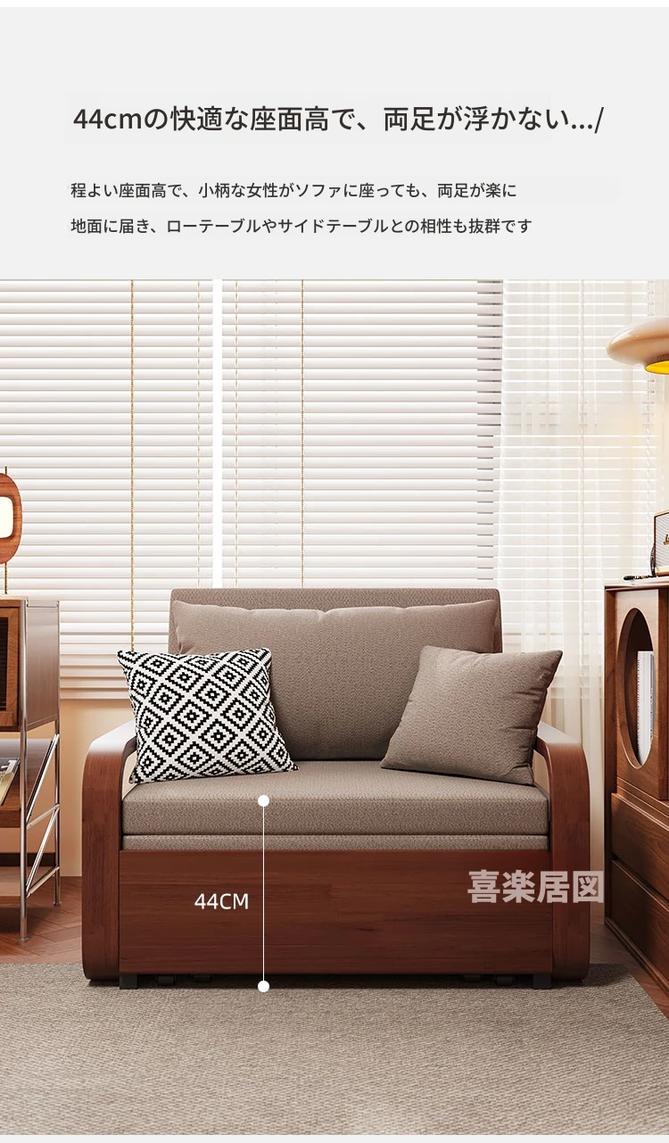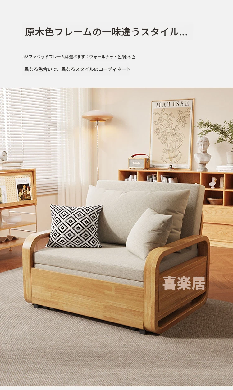 折りたたみ式の無垢材ソファベッド - シングルタイプの多機能デザイン!小型住宅や書斎、バルコニーに最適。お昼寝やリラックスタイムにぴったりのスライド式、伸縮可能なスタイルで快適さを提供します!