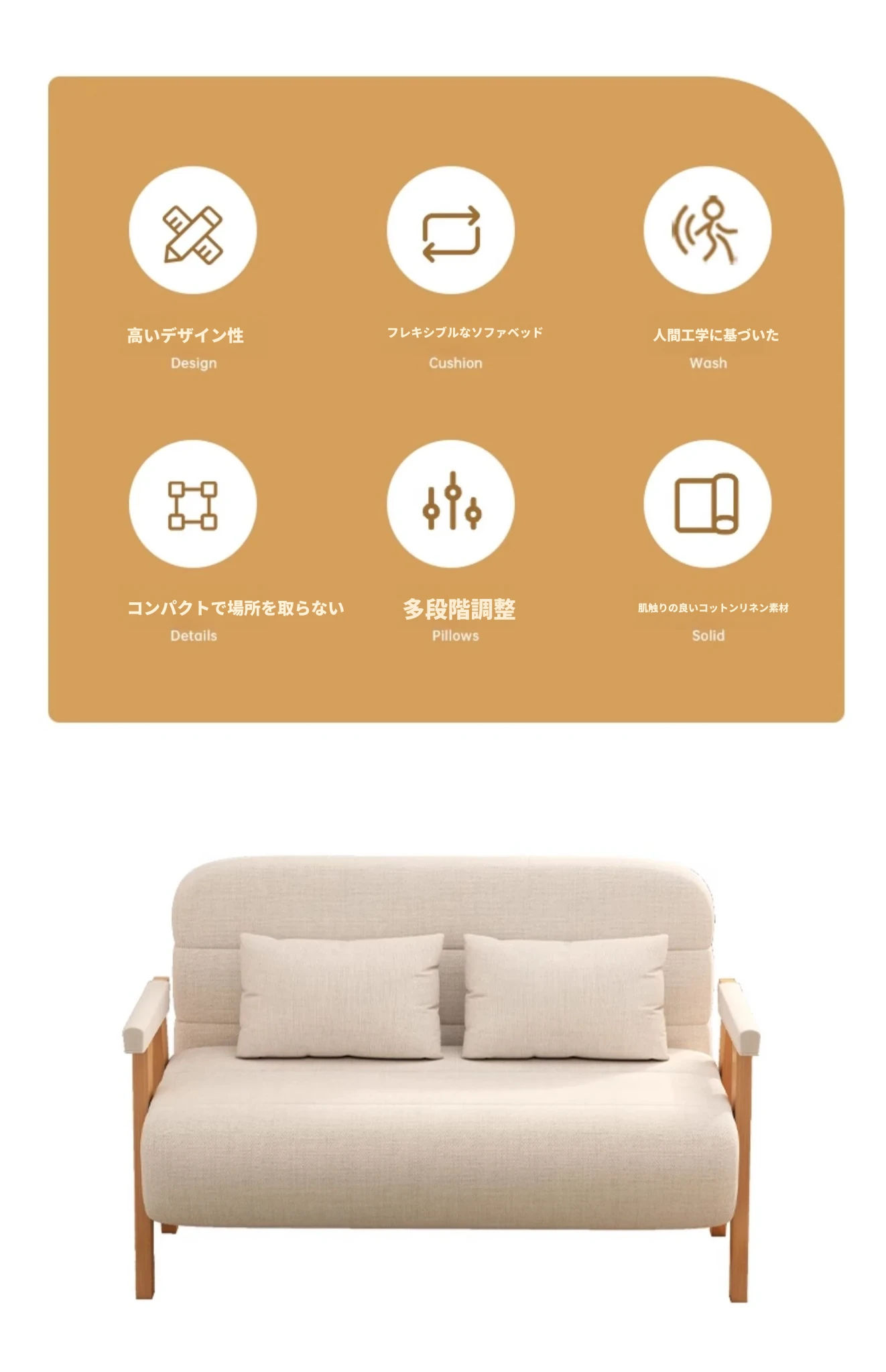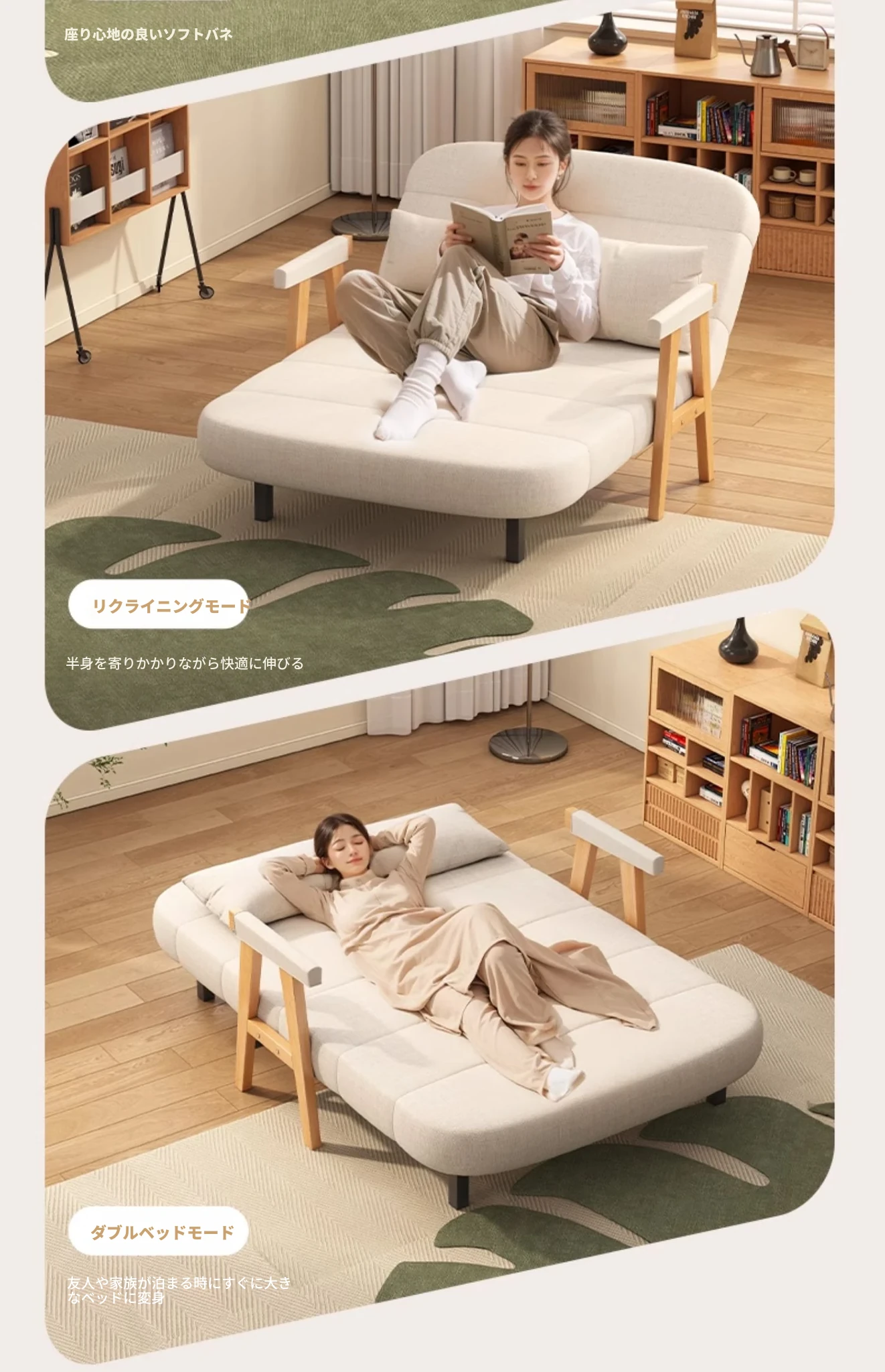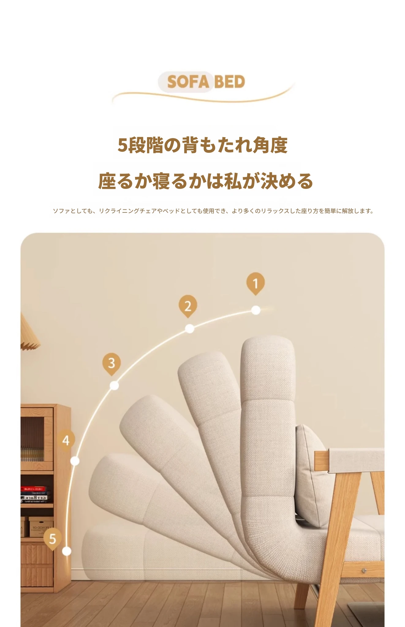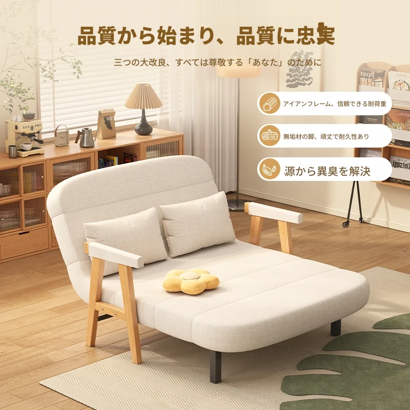 高品質の無垢材製ソファベッド!折りたたみ式で省スペース、小型住宅に最適。リラックスできる便利なサポート、1人用の快適なリビングルームやバルコニー用の昼寝チェア!