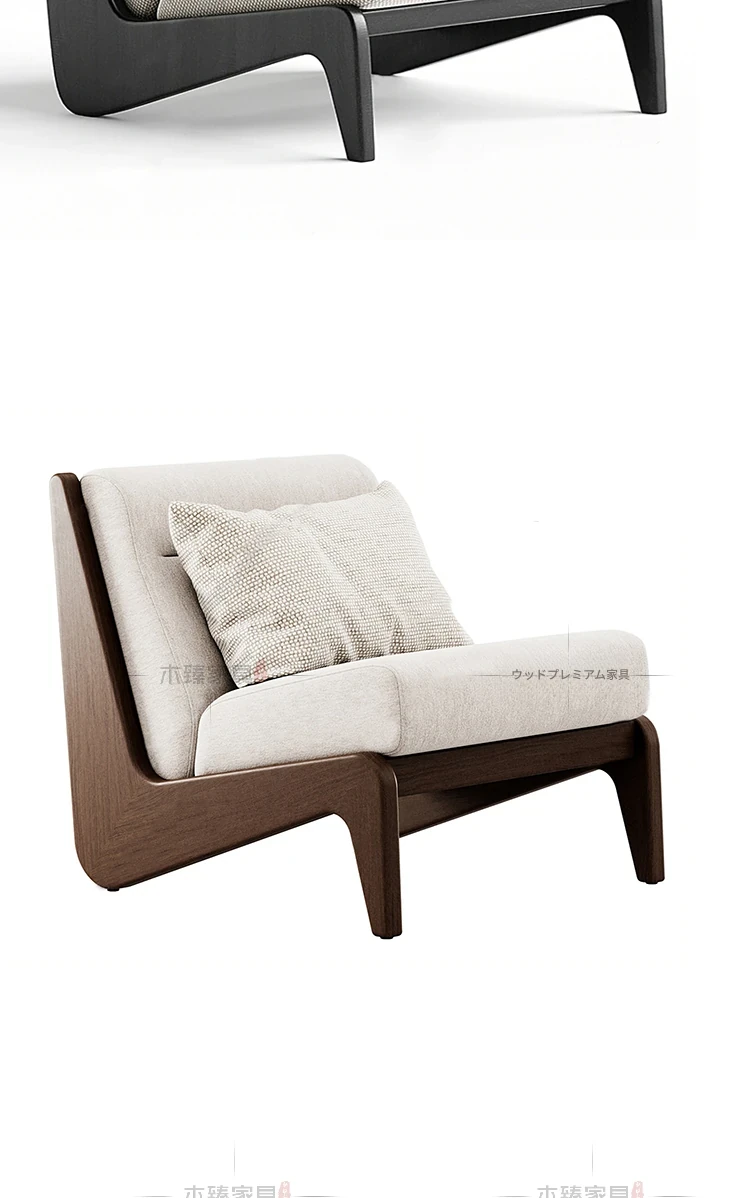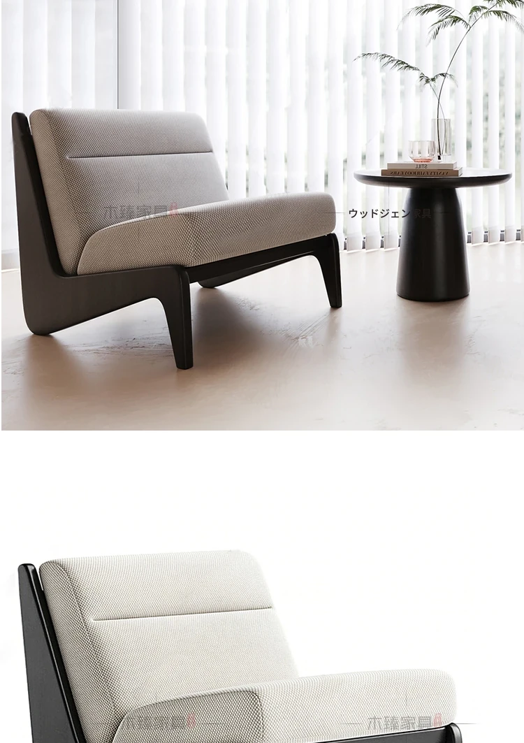 北欧風モダン無垢材ソファチェア|シンプルなデザインで、モデルルームやホテル客室、会所接待室に最適なリラクゼーションチェア!快適さとスタイルを兼ね備えた一品。