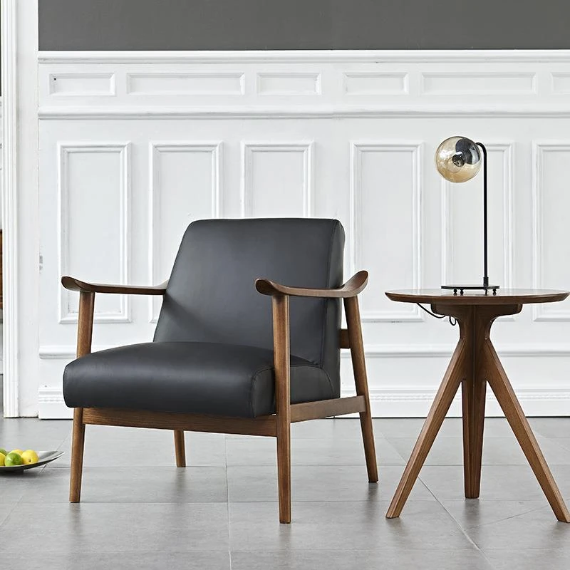 北欧スタイルの無垢材ソファ - シンプルでおしゃれな水曲柳製、リビングや寝室、バルコニーにぴったりなコンパクトな一人掛けソファ。小さなスペースにも最適!