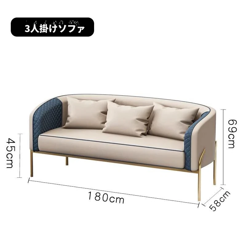 120長テーブル+2脚のシングルソファ+ダブルソファ 【カラー選択可】