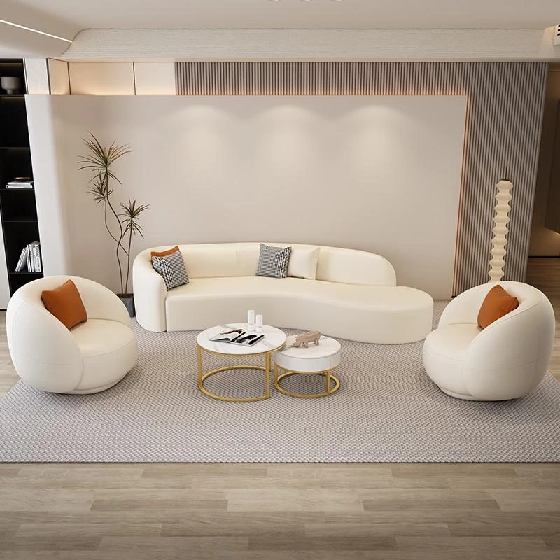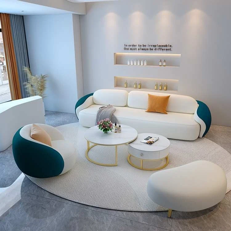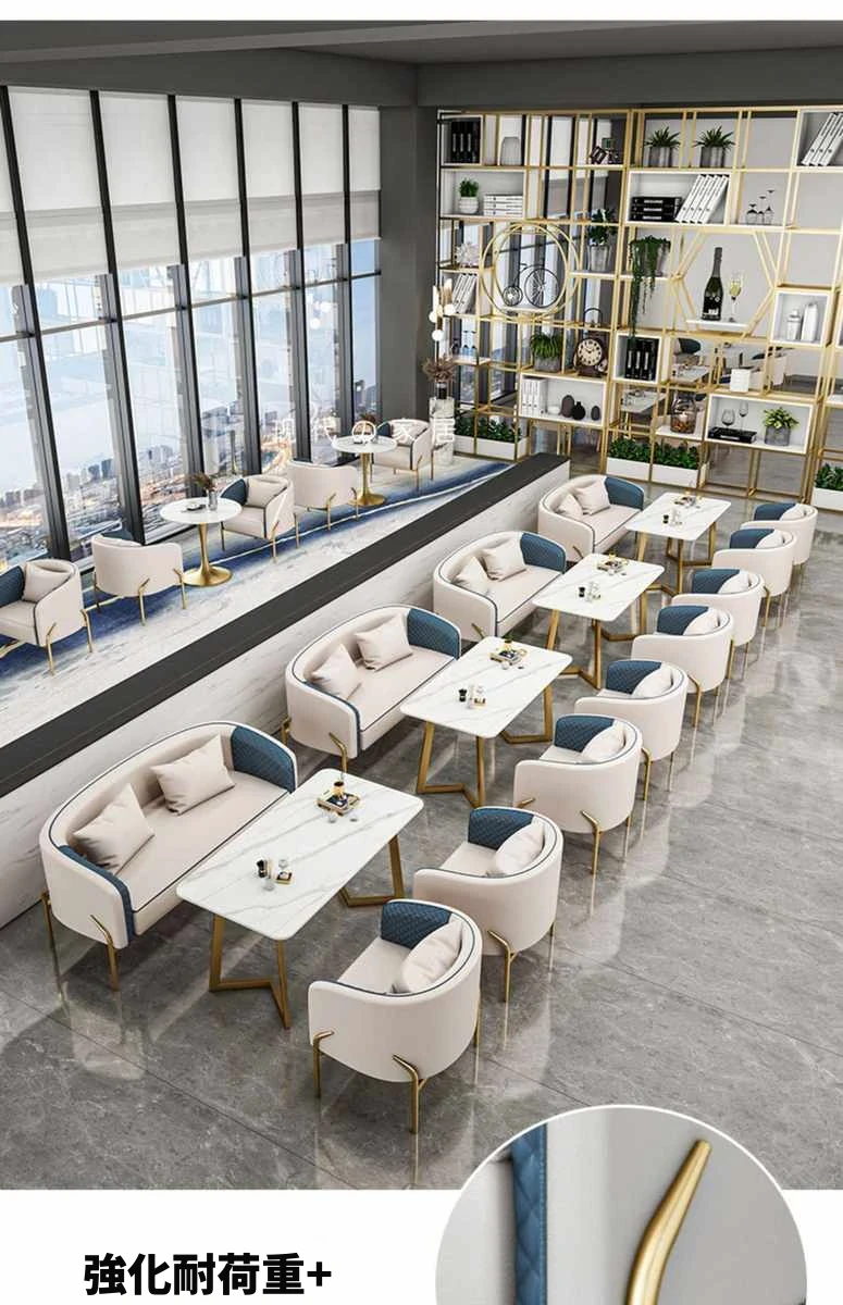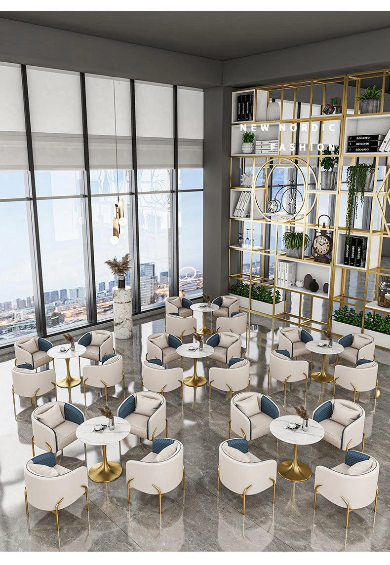 北欧スタイルのカジュアルソファチェア - 展示会やカフェ、販売所にぴったり!高級感のあるデザインで、影響力のある接客空間を演出します。おしゃれなデザインと快適さを兼ね備えた、理想的なテーブル&チェアセット。