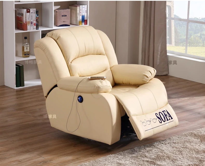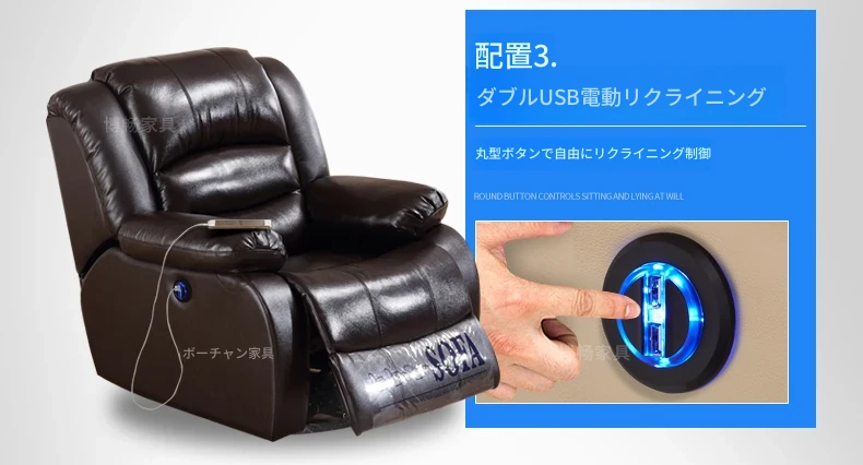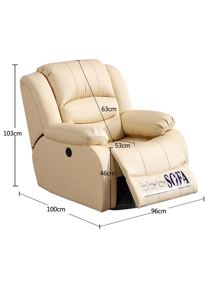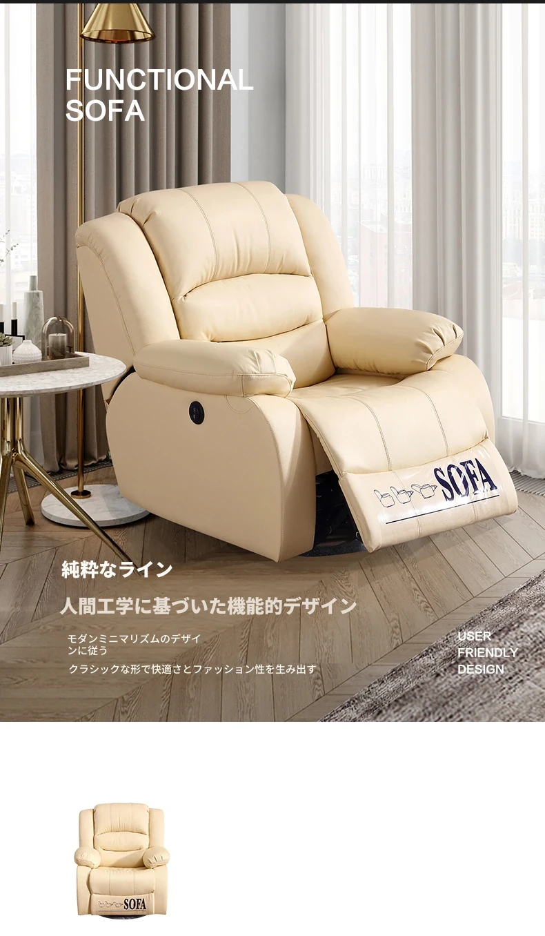 一人用のエレガントな電動ソファ、現代的でミニマルなデザイン、真皮仕立て!多機能で小型リビングにも最適なラウンジャー。快適なリラックスタイムをお約束します!