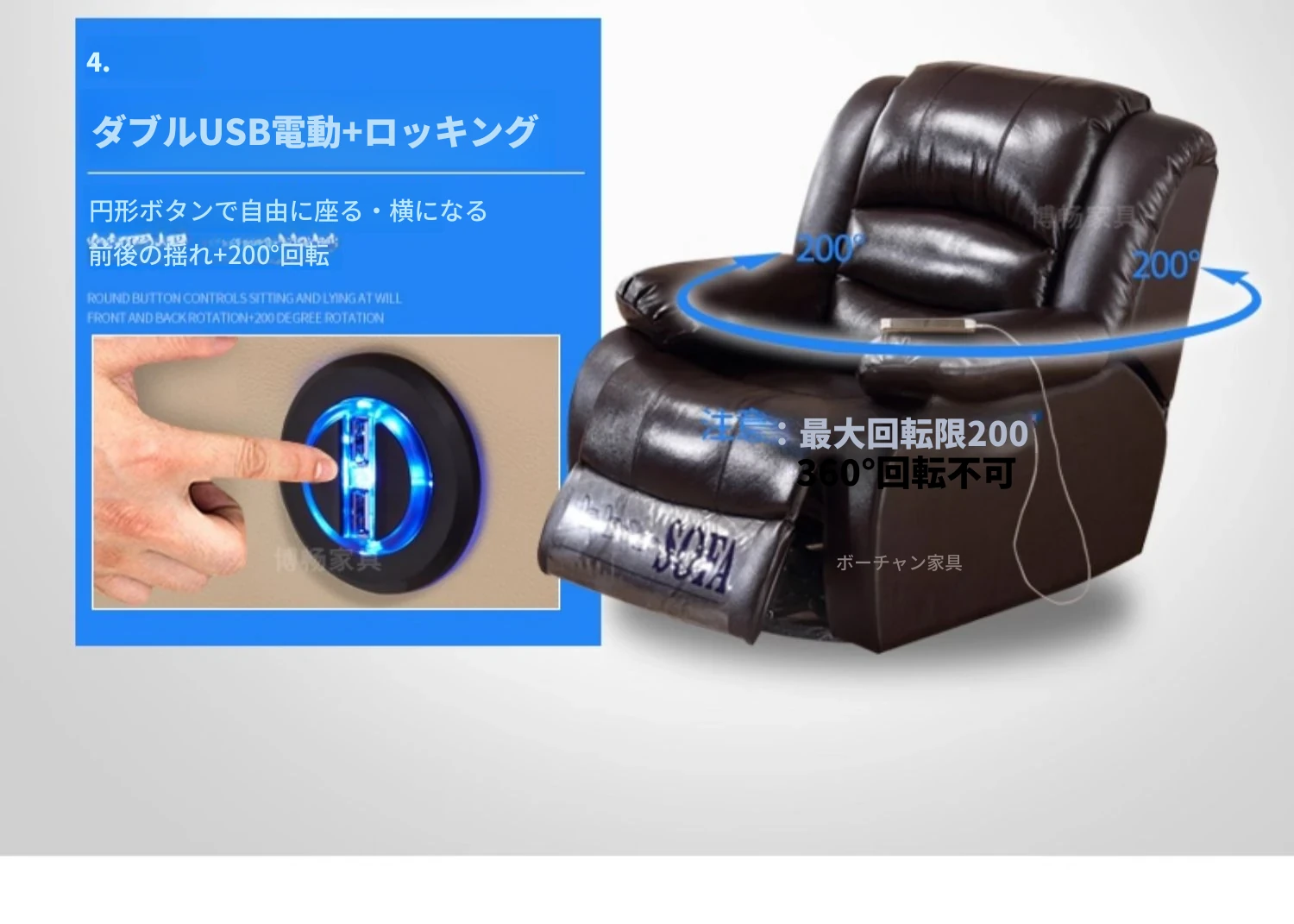 電動USBストレッチ+前後スイング+300°回転