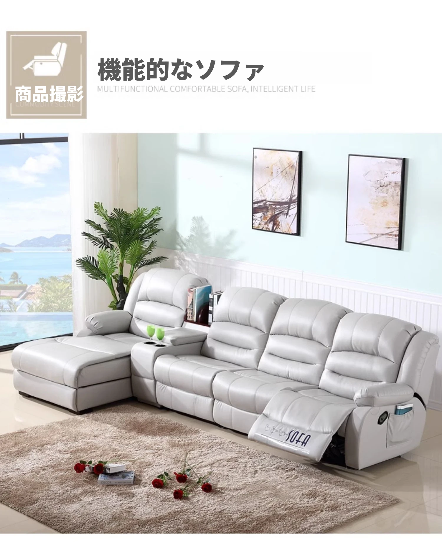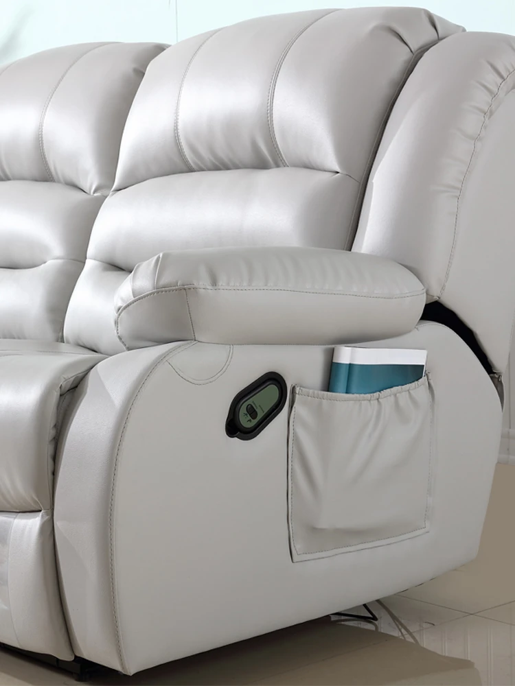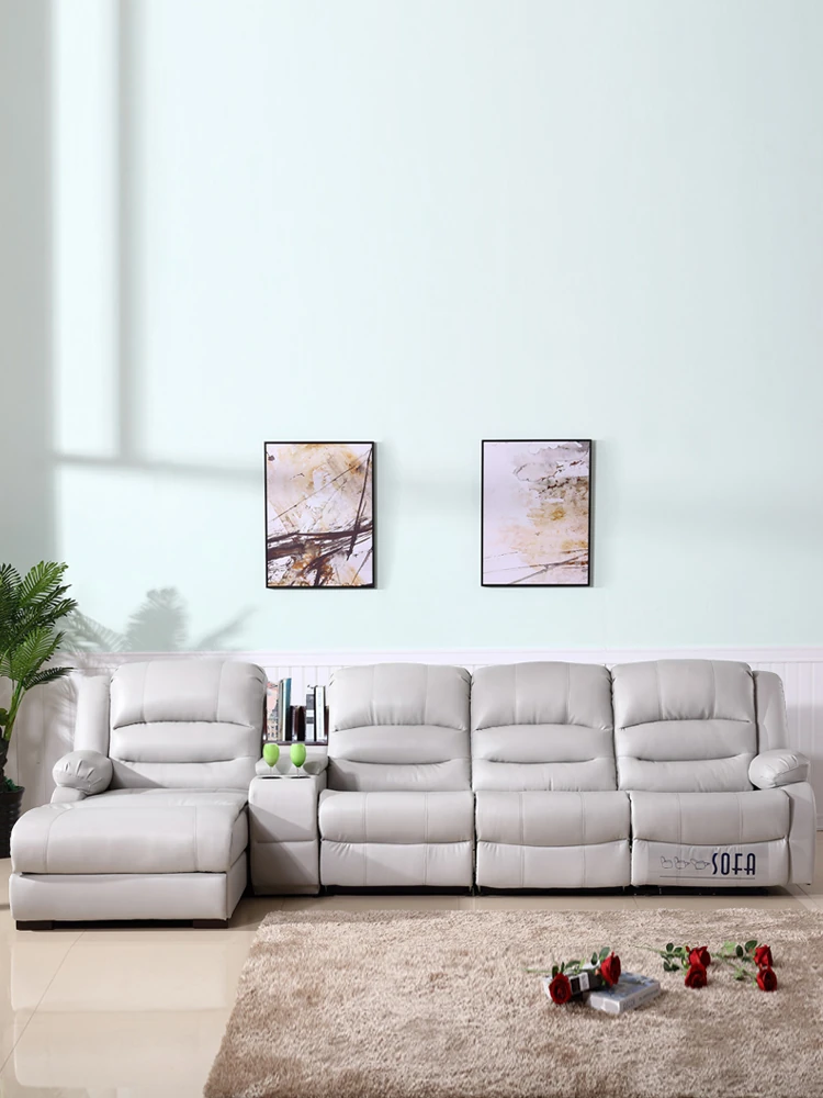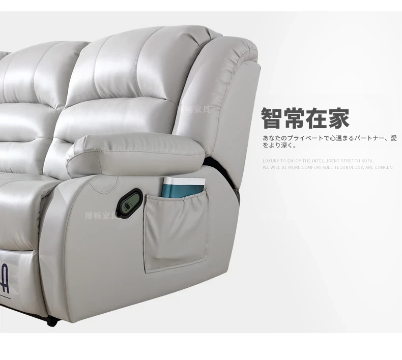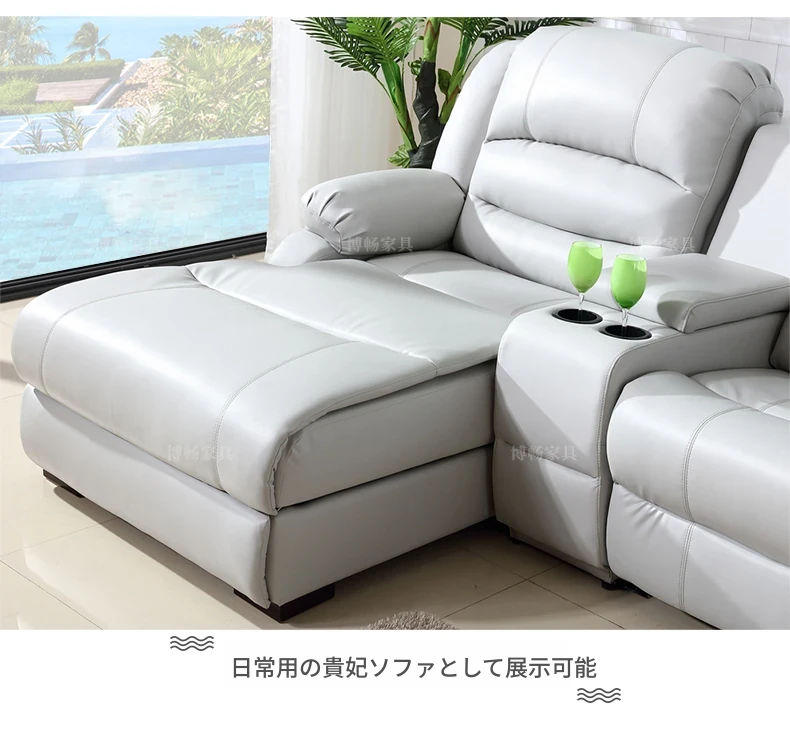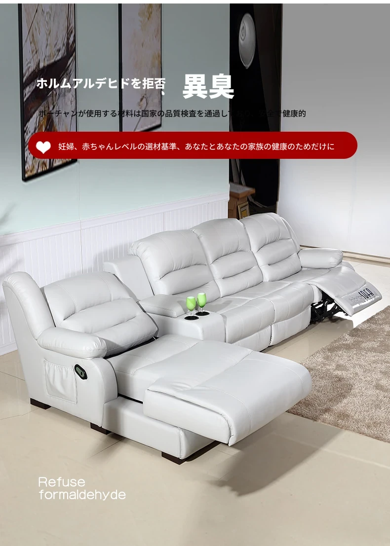 本革製の高級牛革を使用したモダンでシンプルなコーナーソファ。多機能宇宙キャビンデザイン、リクライニング電動ソファで、快適さとスタイルを兼ね備えた一品です!