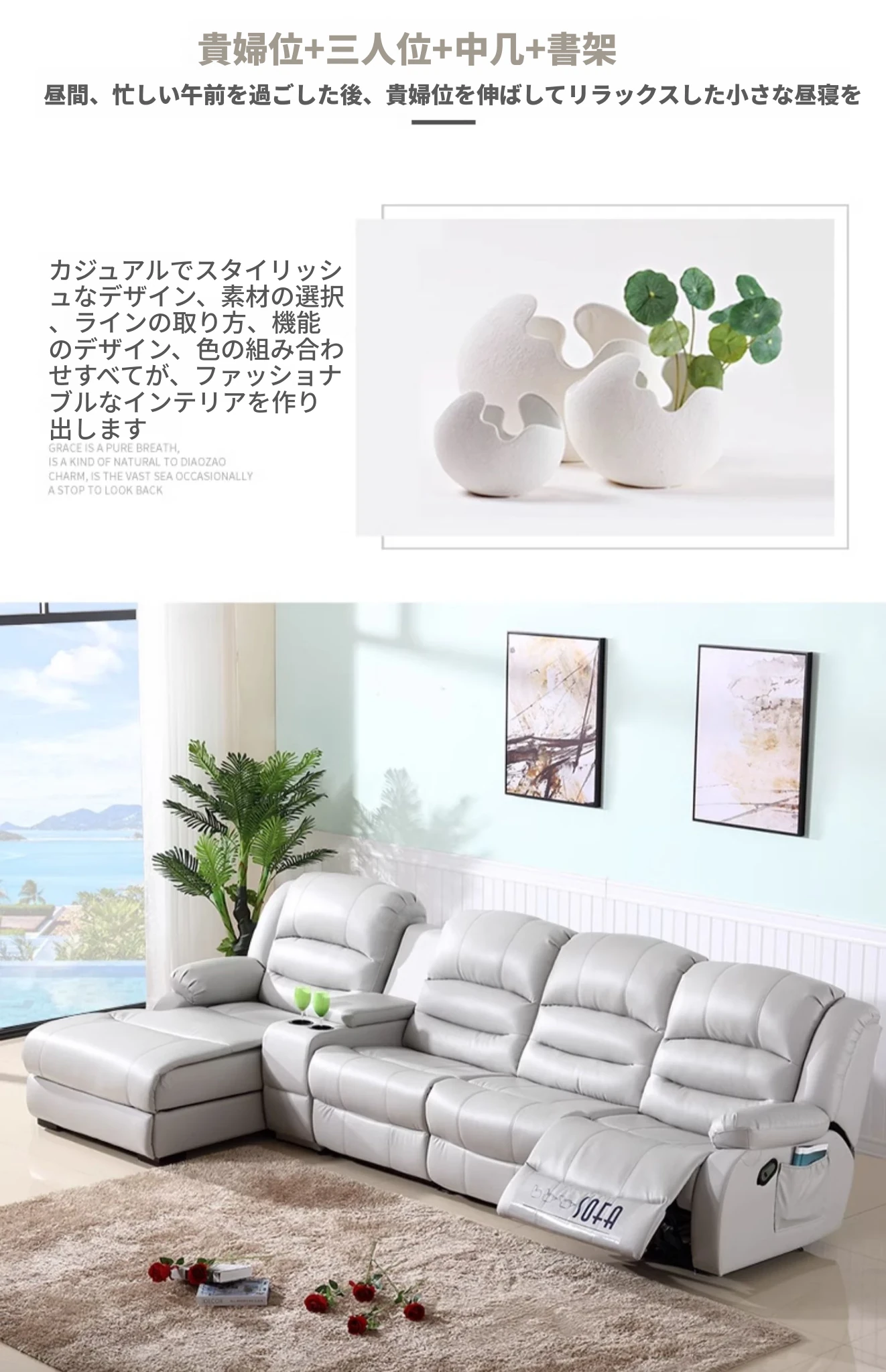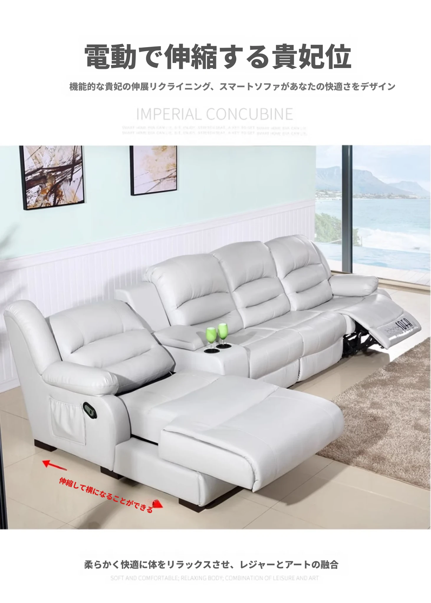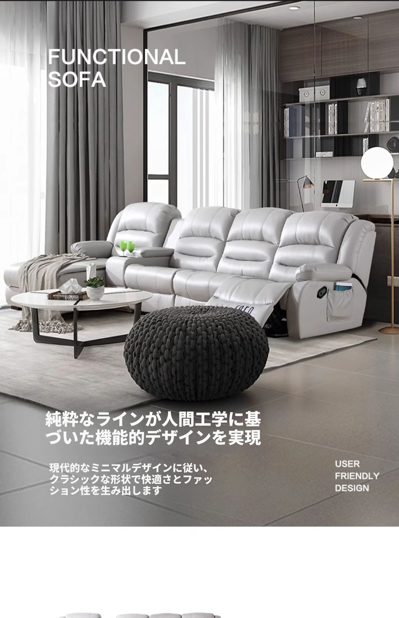 本革製の高級牛革を使用したモダンでシンプルなコーナーソファ。多機能宇宙キャビンデザイン、リクライニング電動ソファで、快適さとスタイルを兼ね備えた一品です!