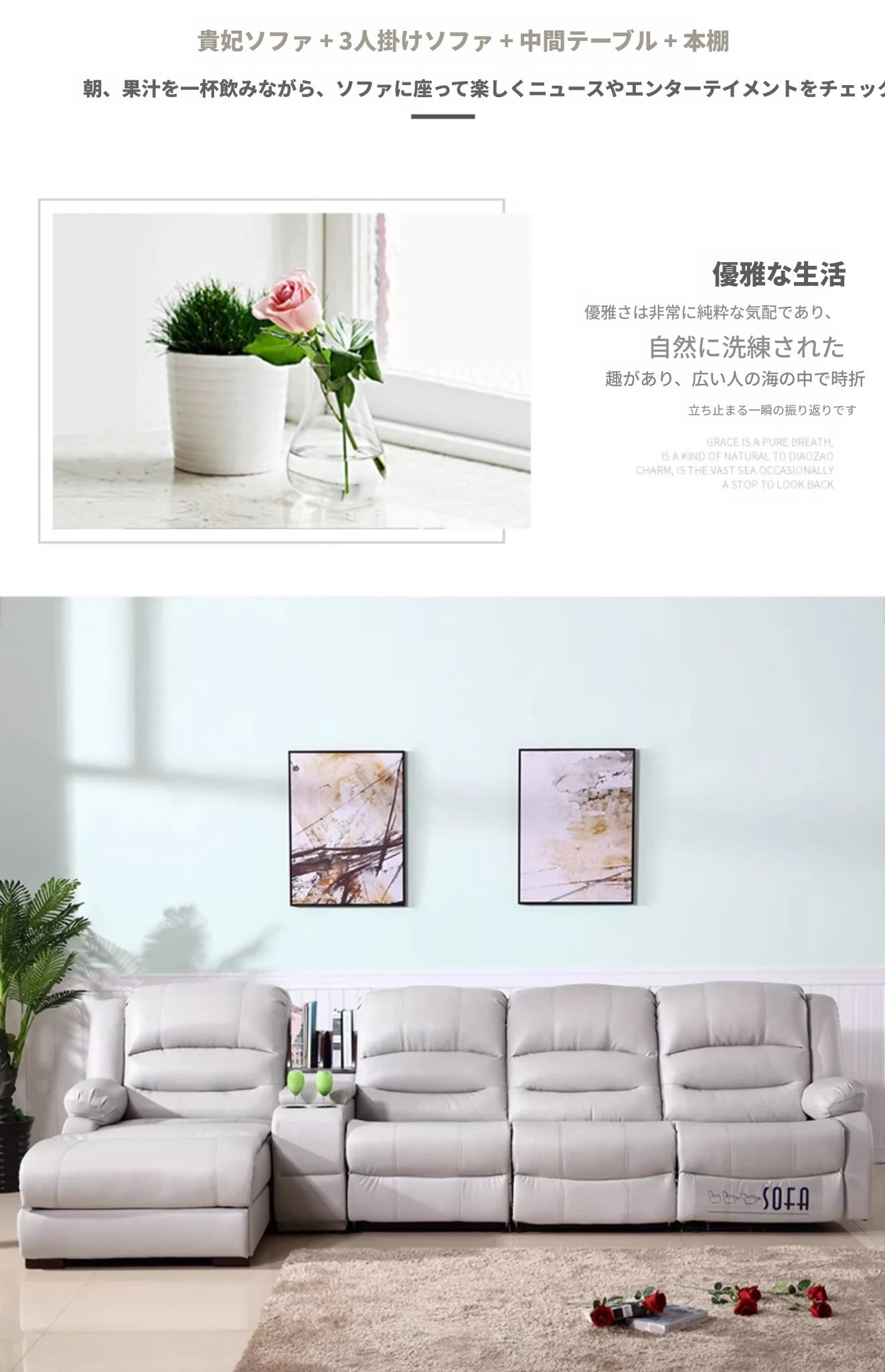 三人掛け+センターテーブル+カウチ【全電動リクライニング】