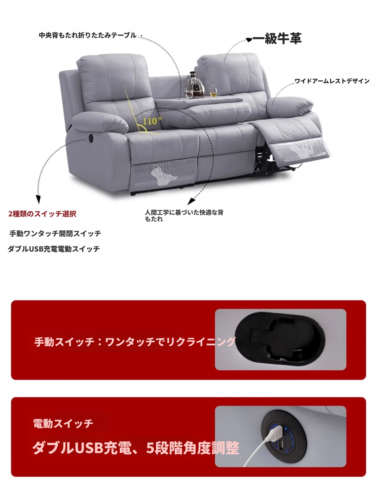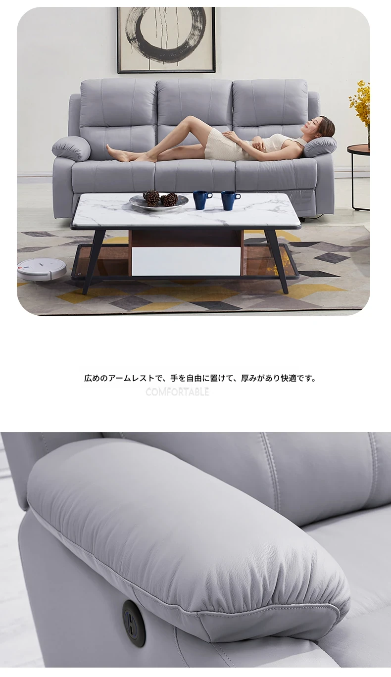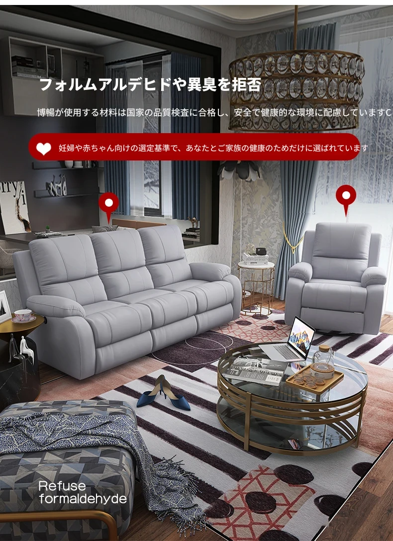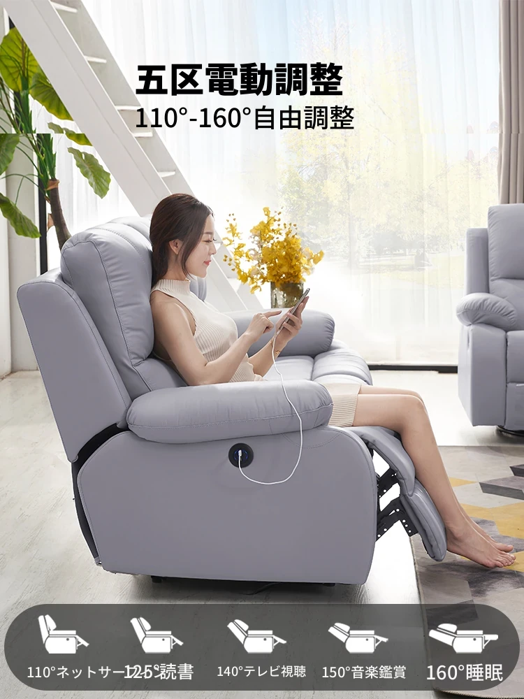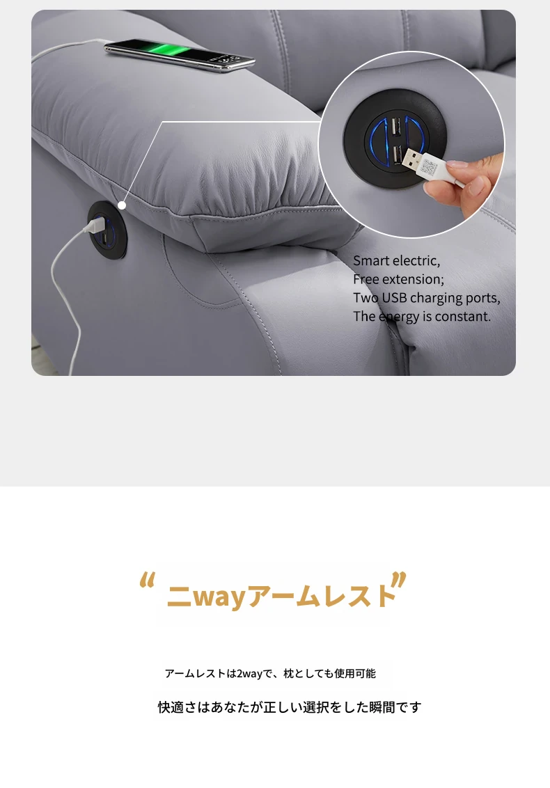 エレガントな宇宙デザインの電動ソファ!高級本革使用の多機能キャビンで、リビングをスタイリッシュに演出。モダンでシンプル、小さなスペースにもぴったりなコンビネーション!