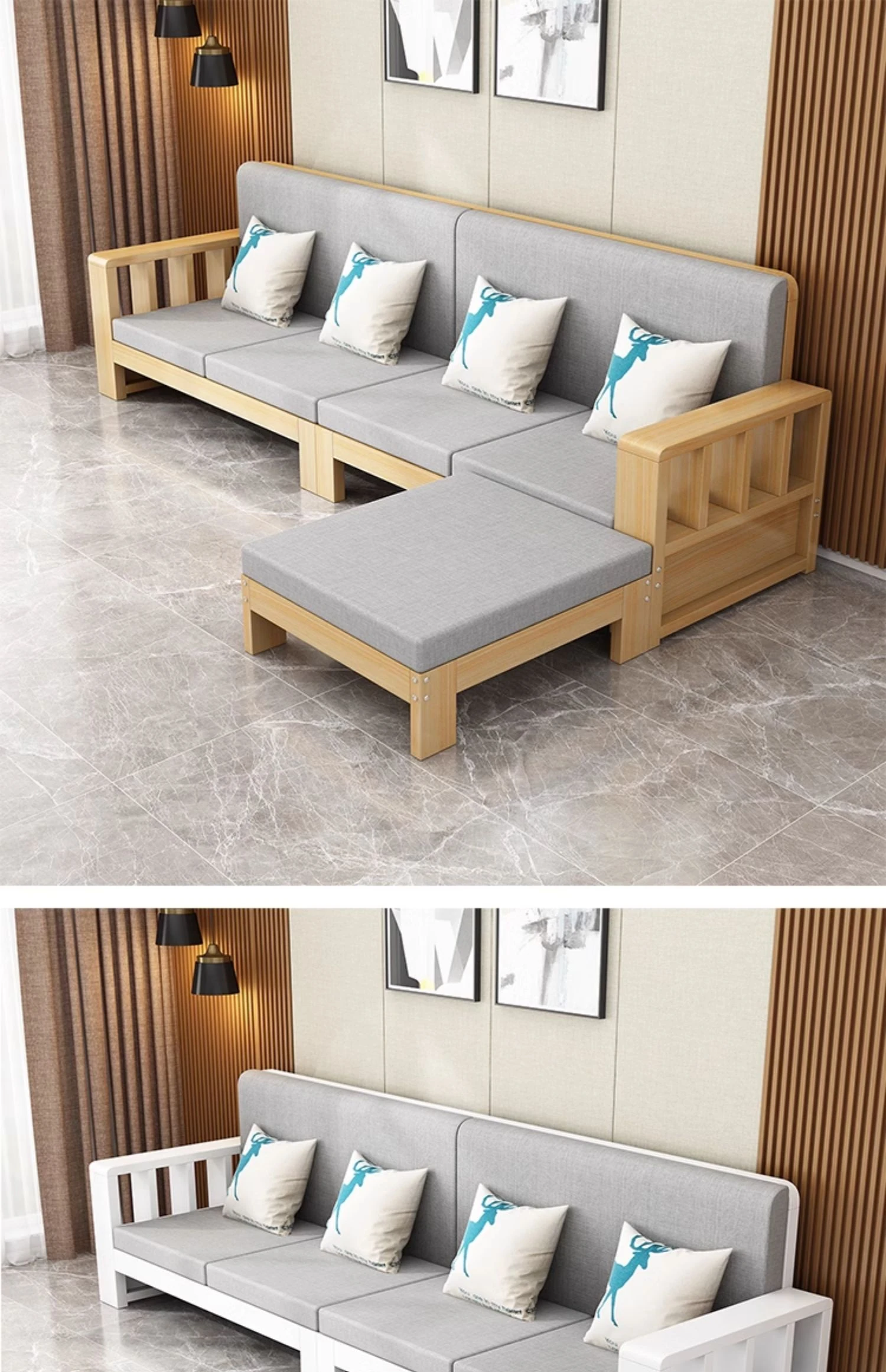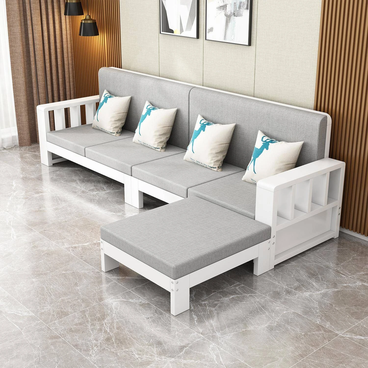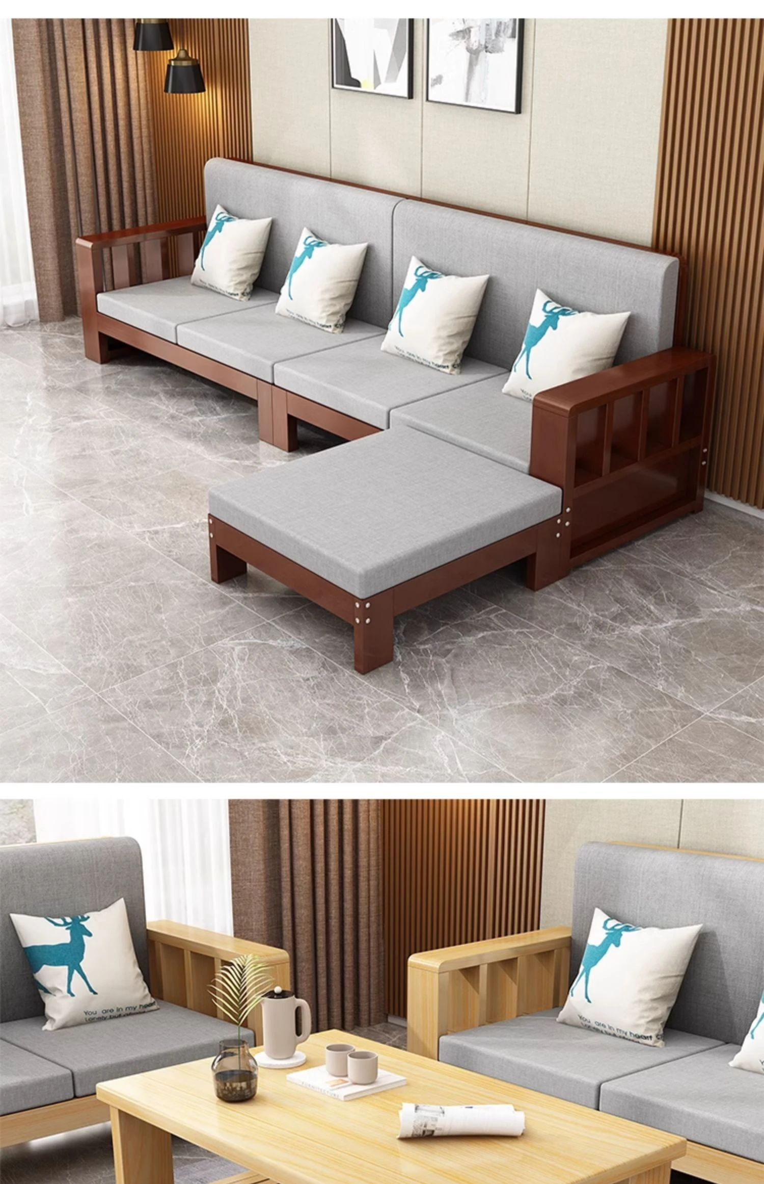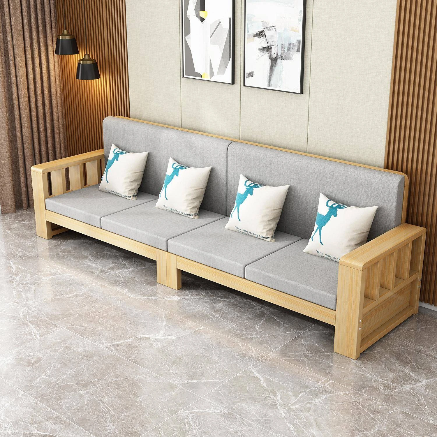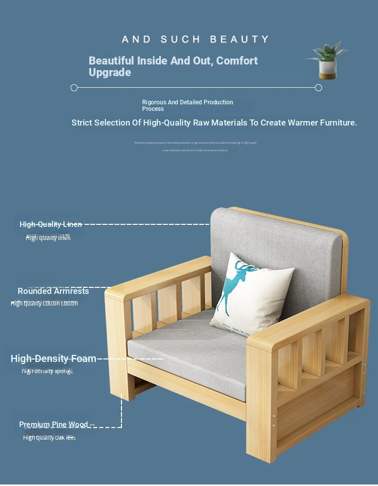 SF001 3Y Wooden Sofa - Modern Minimalist Corner Furniture for Large Living Rooms, Perfect for 2 to 4 People, Ideal for Seasonal Home Makeovers