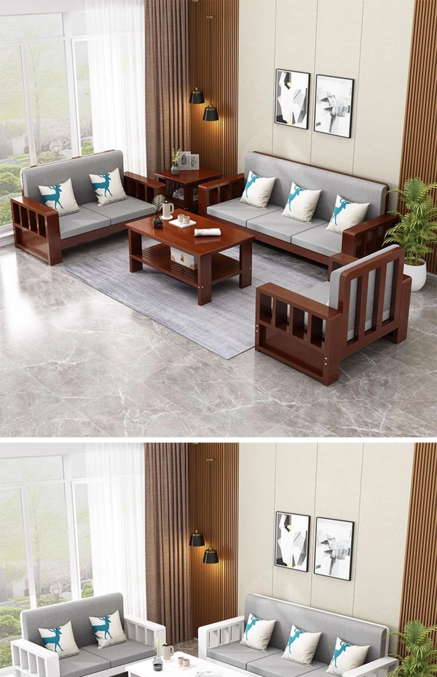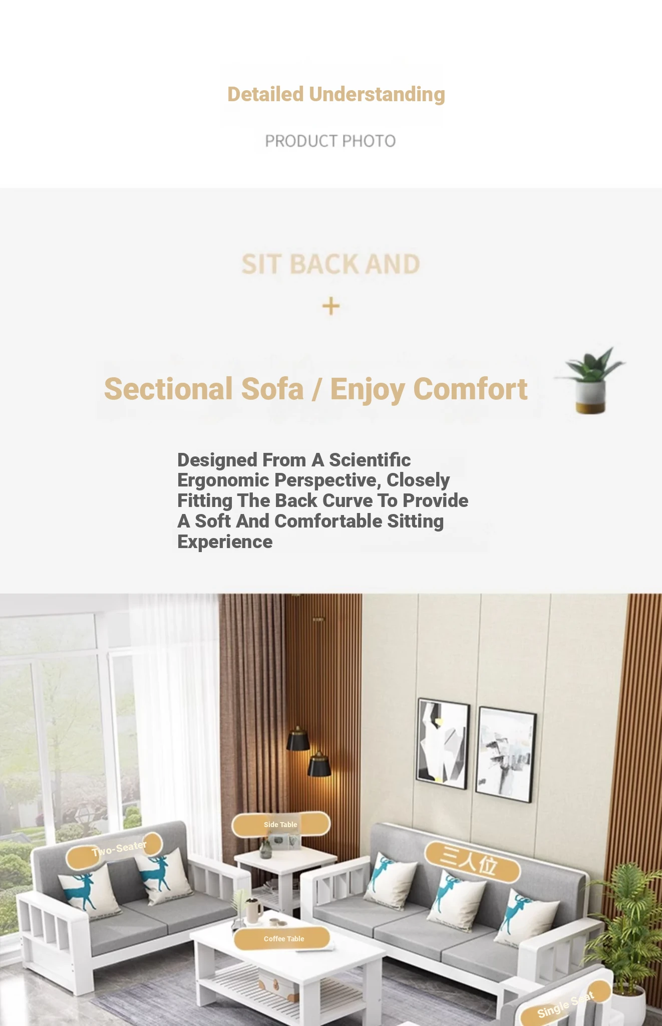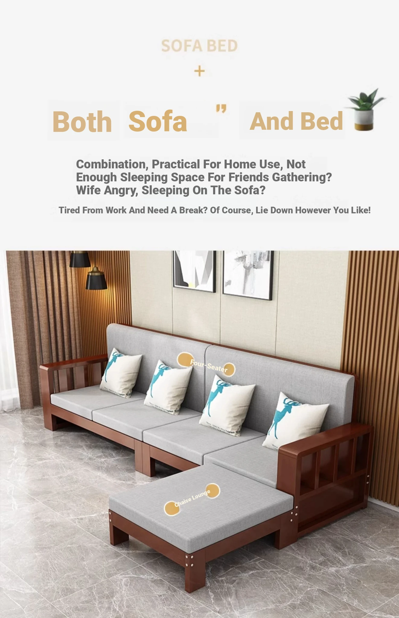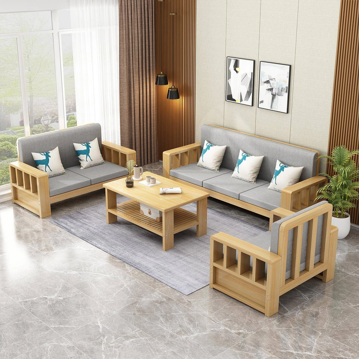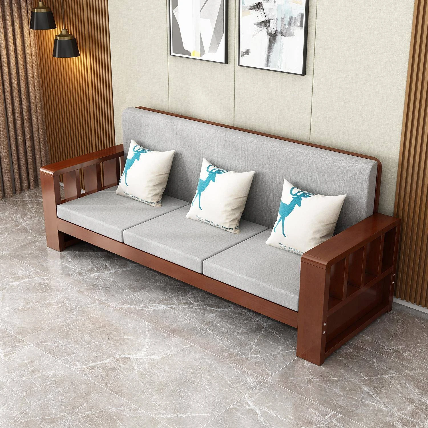 SF001 3Y Wooden Sofa - Modern Minimalist Corner Furniture for Large Living Rooms, Perfect for 2 to 4 People, Ideal for Seasonal Home Makeovers