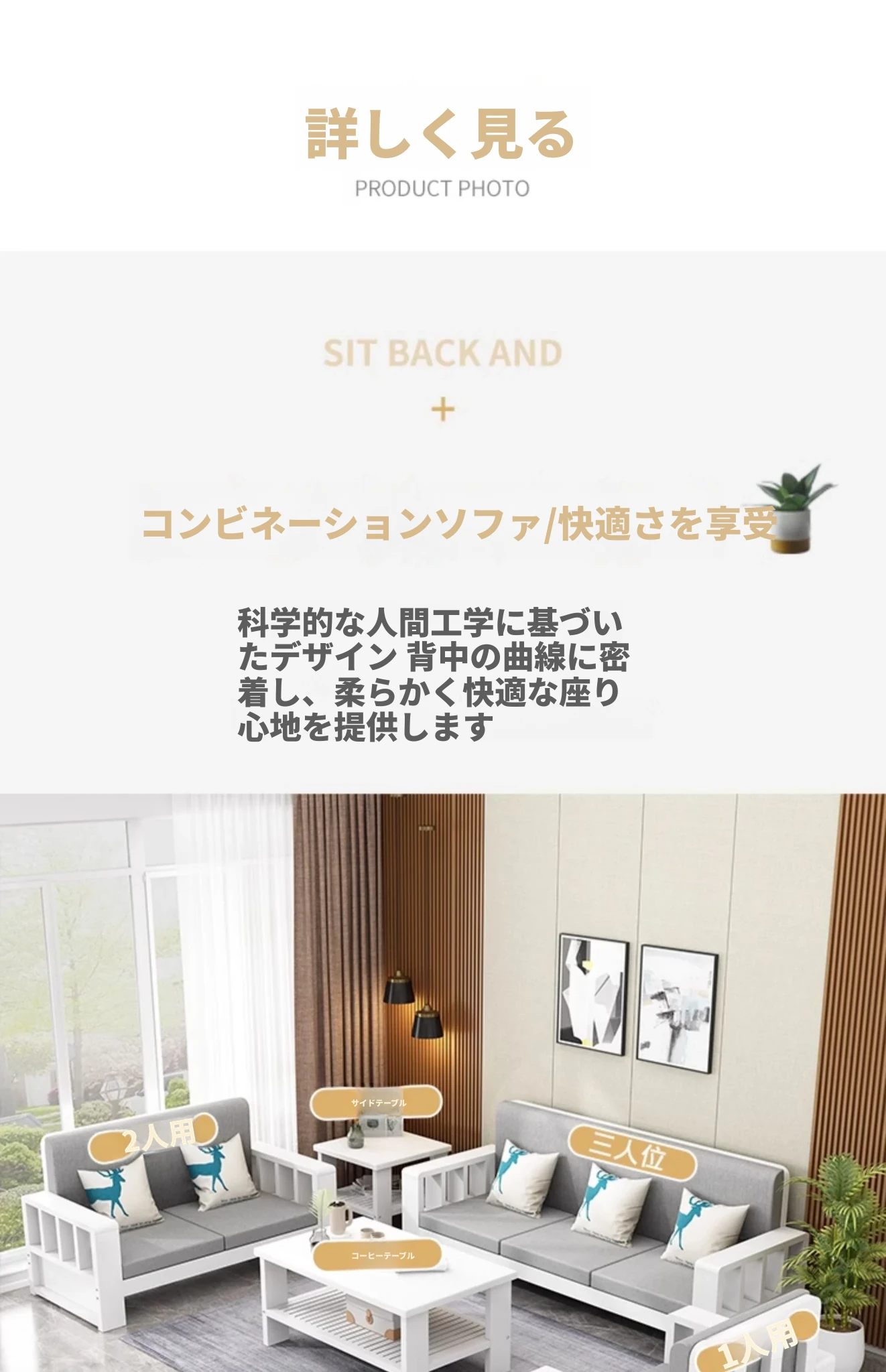 3Y木製SF001新型リアルスタイルミニマリストソファー、2〜4人用のコーナーリビング家具、大型住宅に最適!快適さとスタイルを両立したお洒落な空間を演出します。