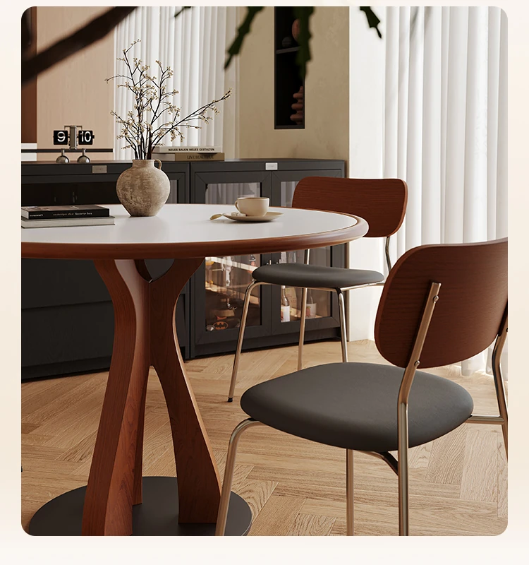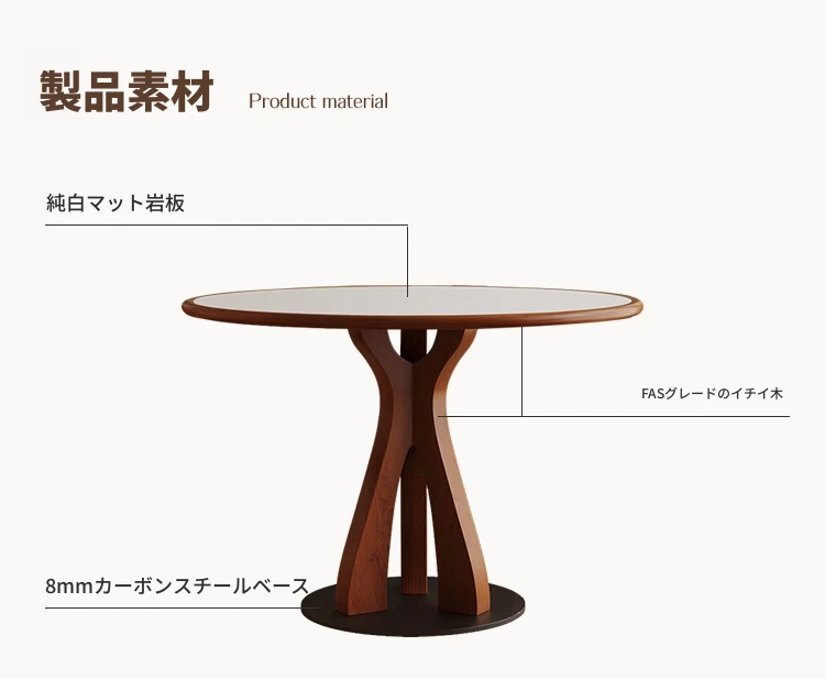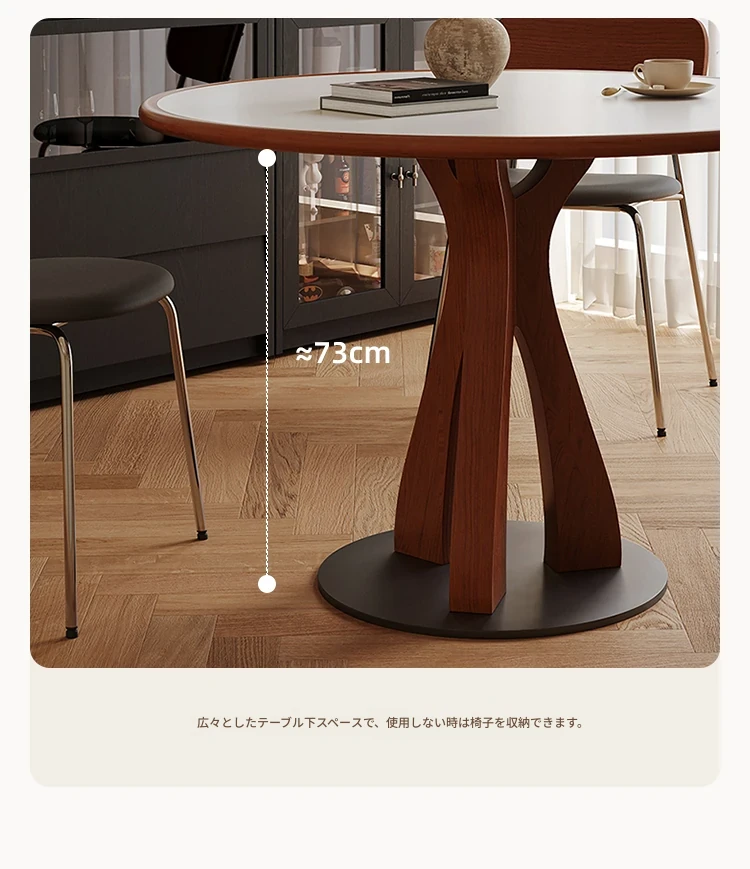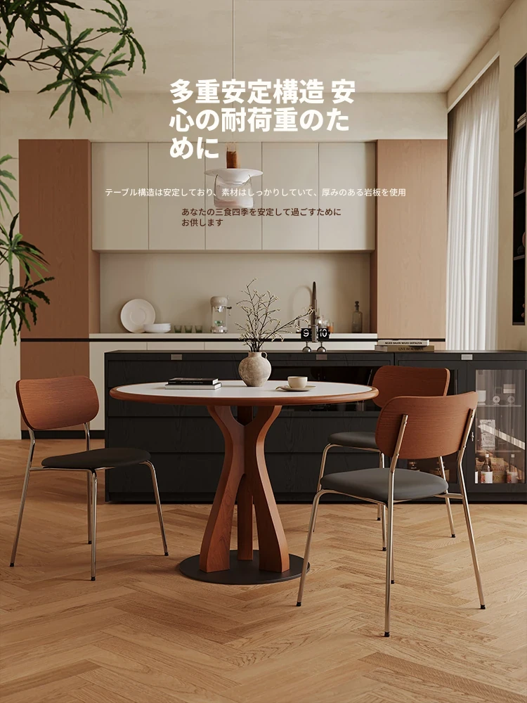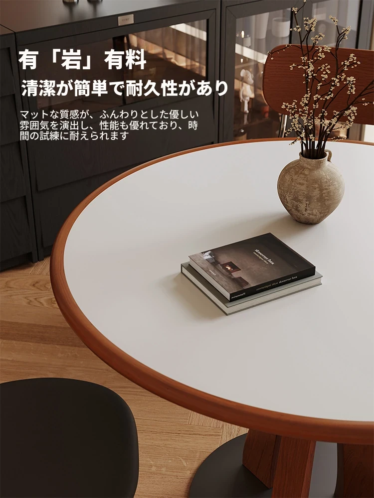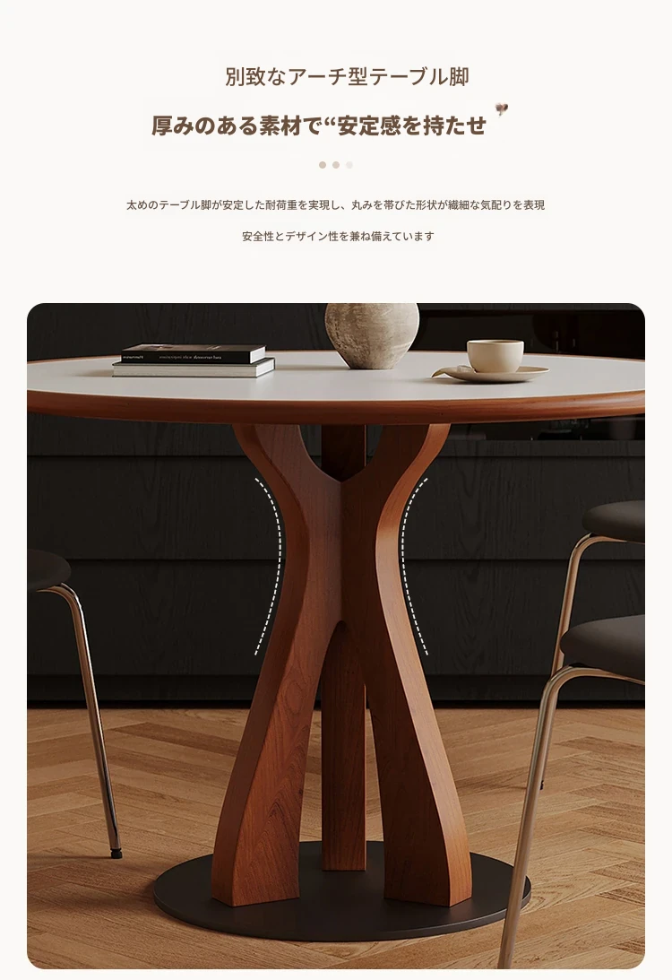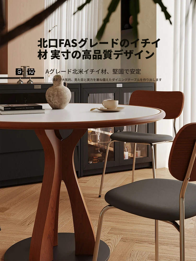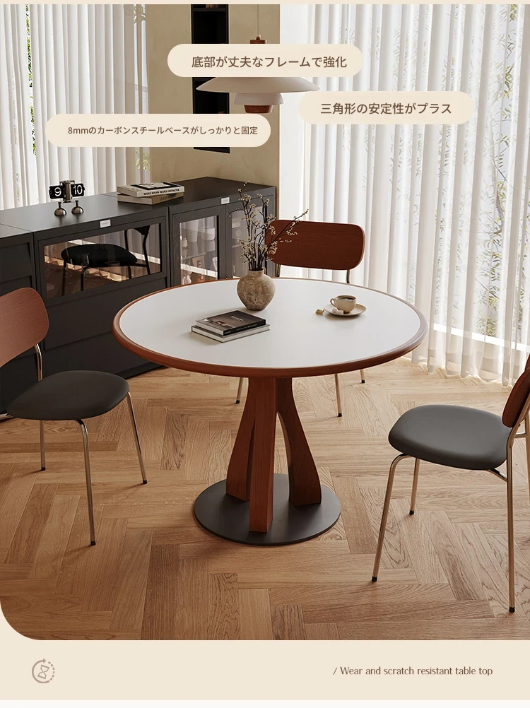 シャミシ 中古風の無垢材ダイニングテーブル 丸テーブル 家庭用 小型住宅向け フランス風レトロデザイン ダイニングチェアセットでおしゃれな食卓を演出!