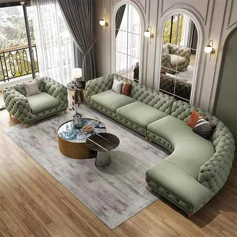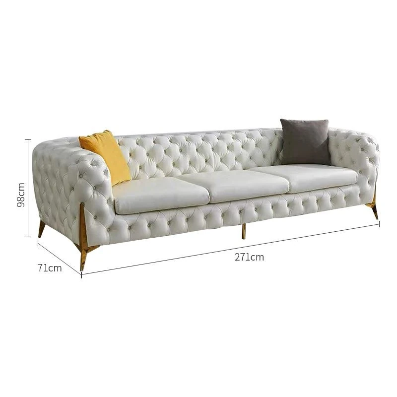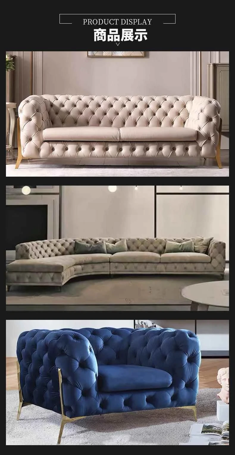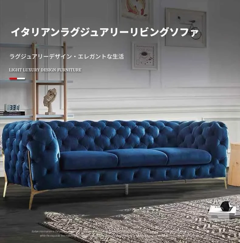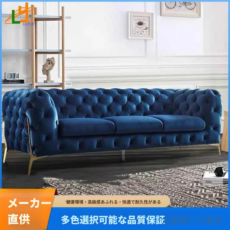 アメリカンライトラグジュアリー布製ボタン付きソファ - シンプルなスタイルのI型デザイン、小型アパートやリビングに最適な2人掛けと3人掛けのコンビネーション、エレガントな合成皮革仕上げ!