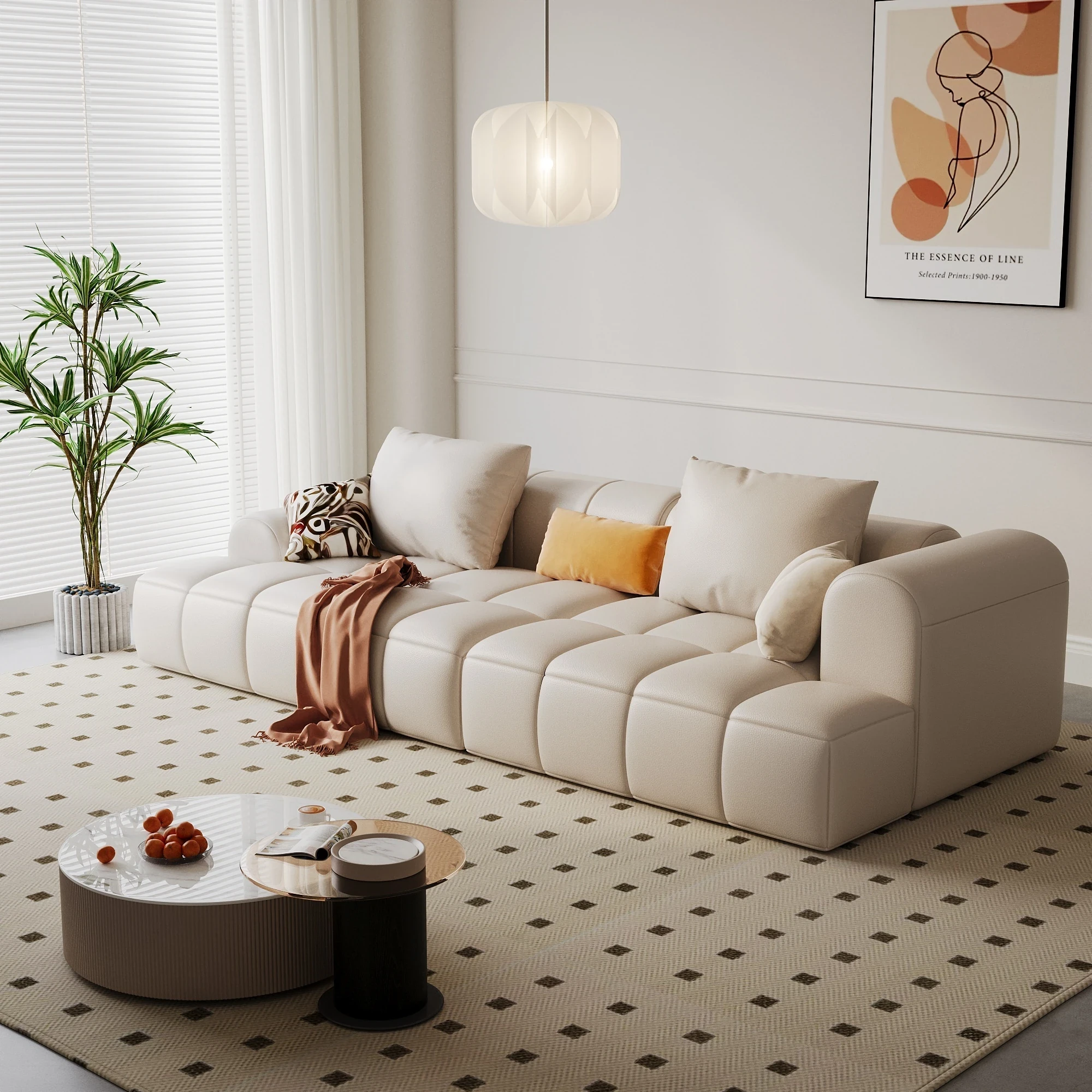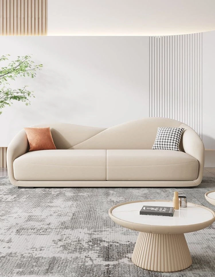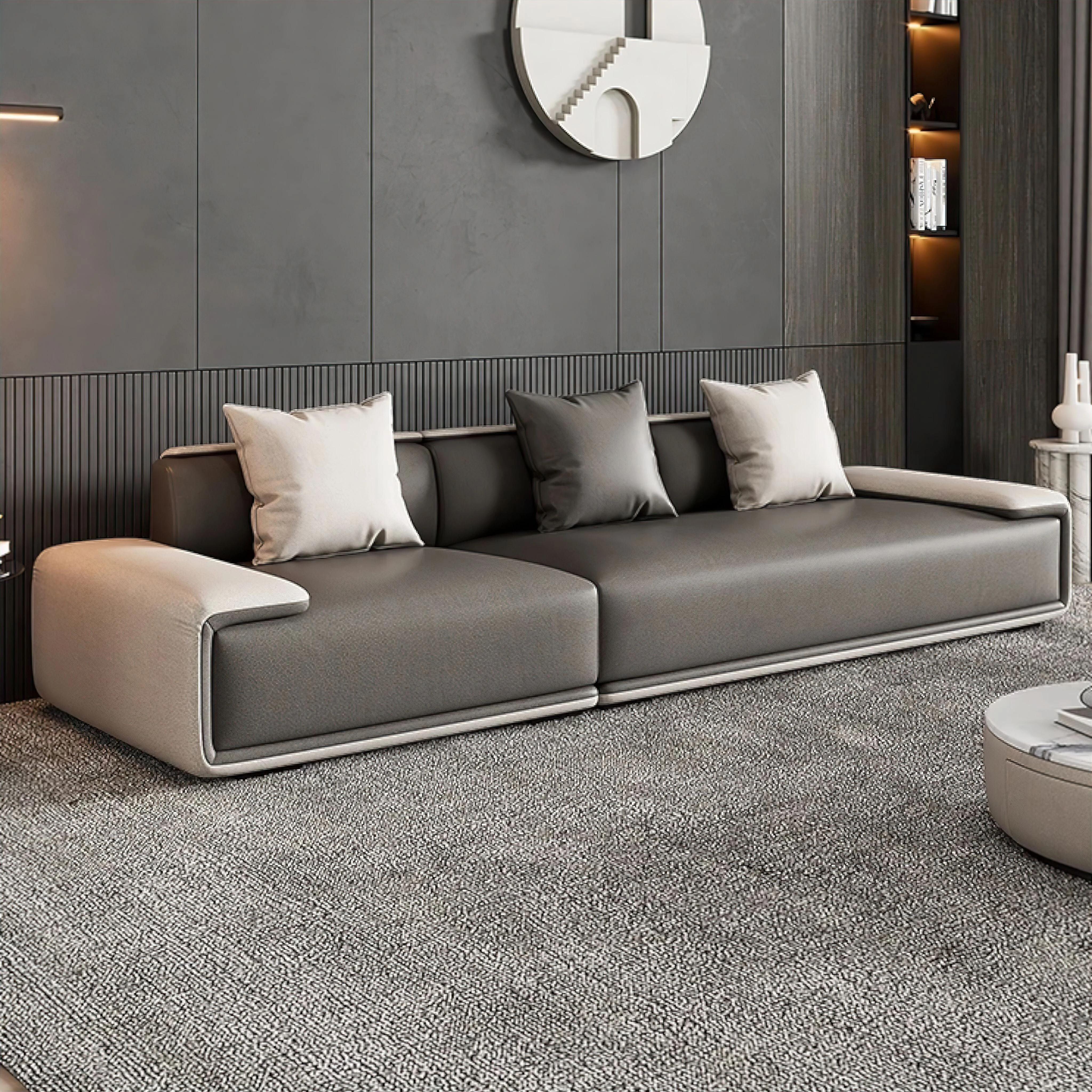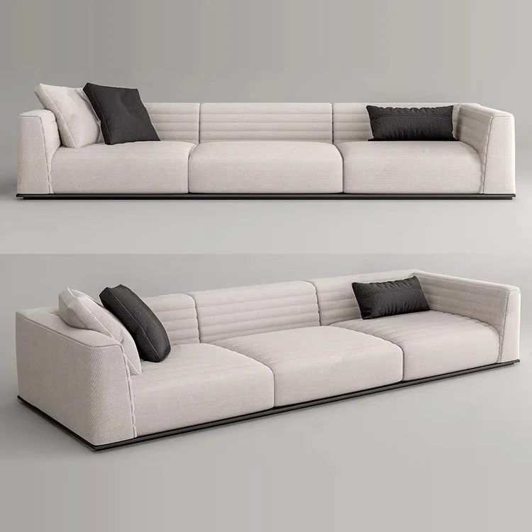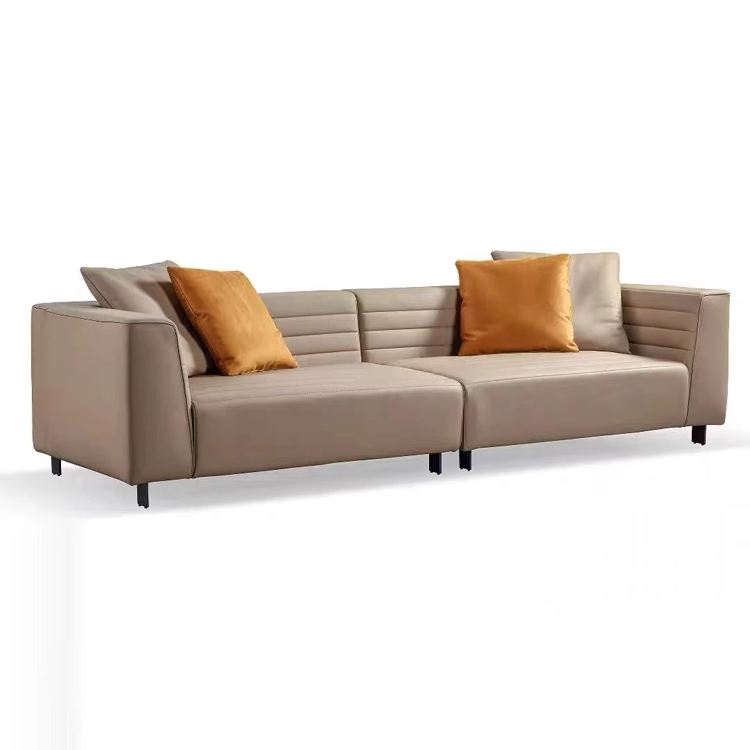 唐川本革製のモダンシンプルな直排ソファ - ラグジュアリーなリビング空間にぴったり!デザイナー監修のホテル・ショールーム向け、広々としたロビー用カスタムベンチ。おしゃれで快適なひとときを演出します。
