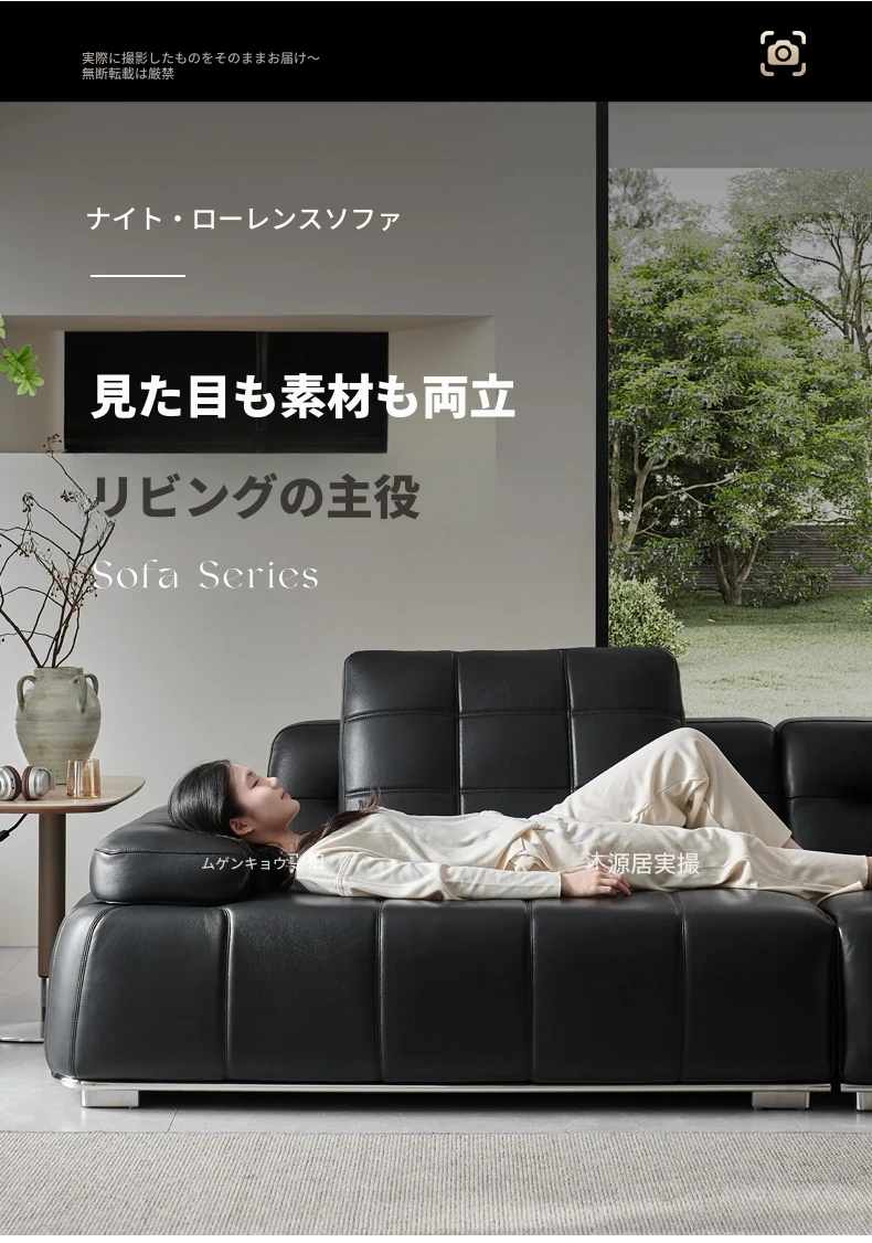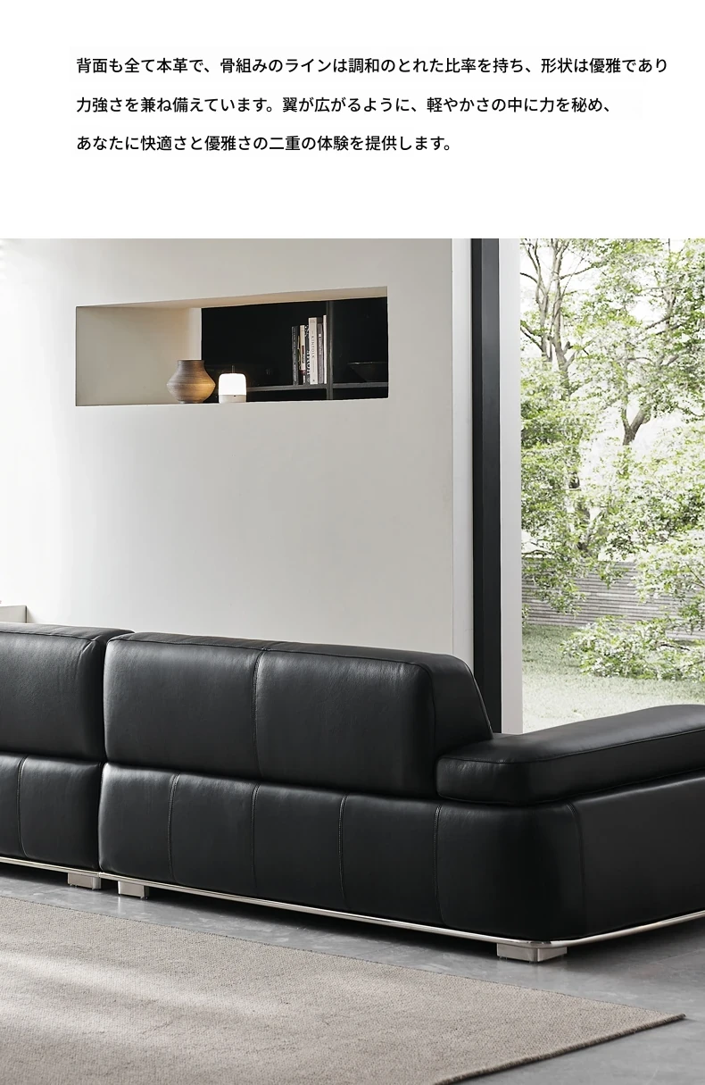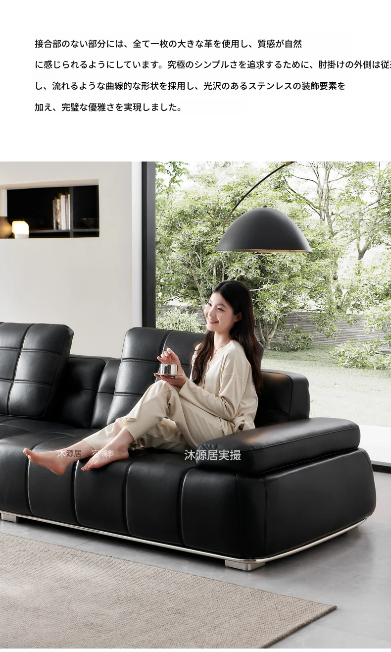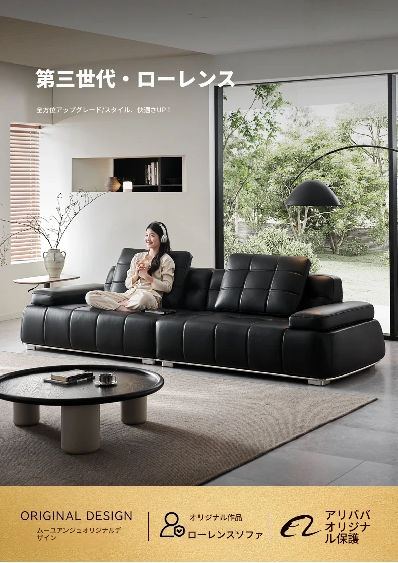 第3世代新型ローランス本革ソファー!イタリアンデザインの洗練されたリビングにぴったりな4人掛けブラック高級ソファ!贅沢な座り心地とスタイリッシュな雰囲気をお楽しみください!