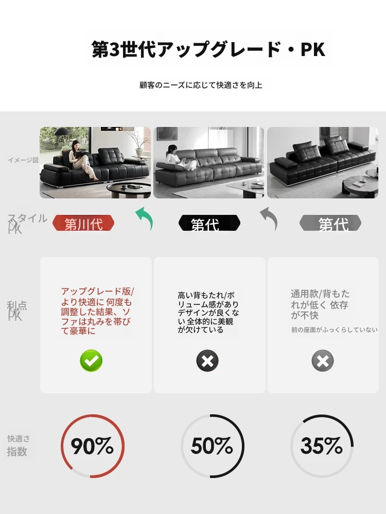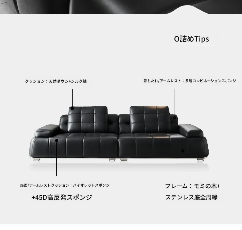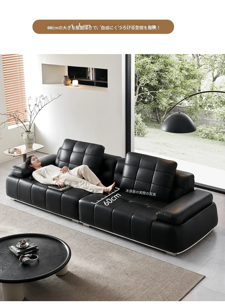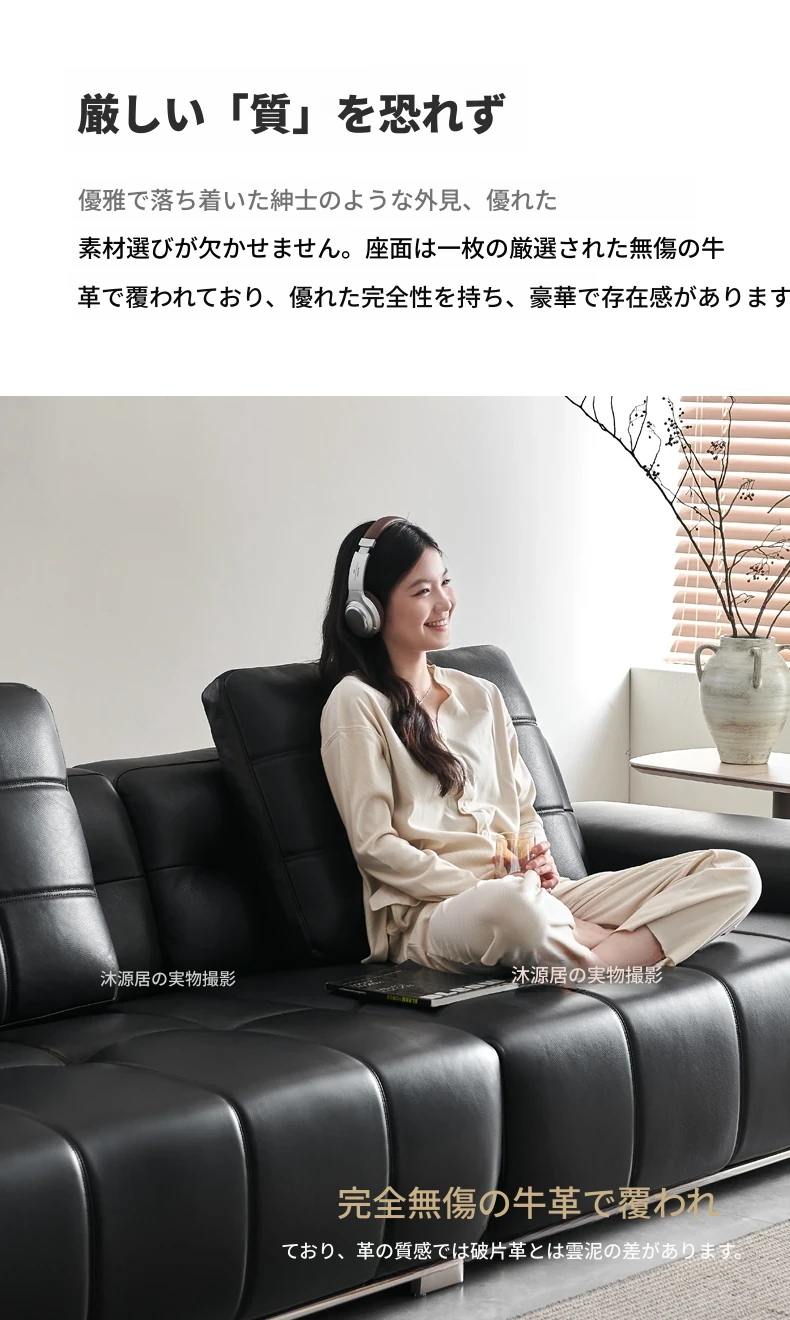 第3世代新型ローランス本革ソファー!イタリアンデザインの洗練されたリビングにぴったりな4人掛けブラック高級ソファ!贅沢な座り心地とスタイリッシュな雰囲気をお楽しみください!