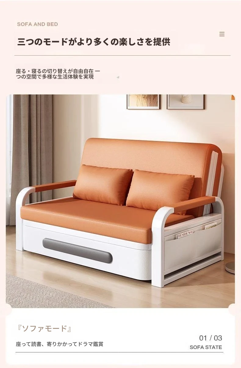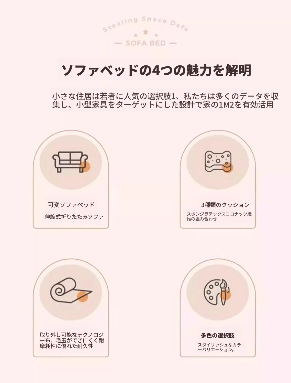 折りたたみ式ソファベッド - 小スペースに最適!リビングやバルコニーで使える一体型、シングルサイズのリラックスベッド。収納もできるので、スマートに空間を活用!