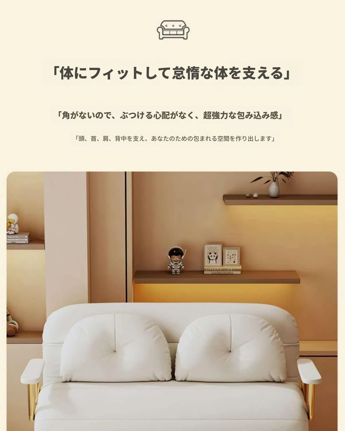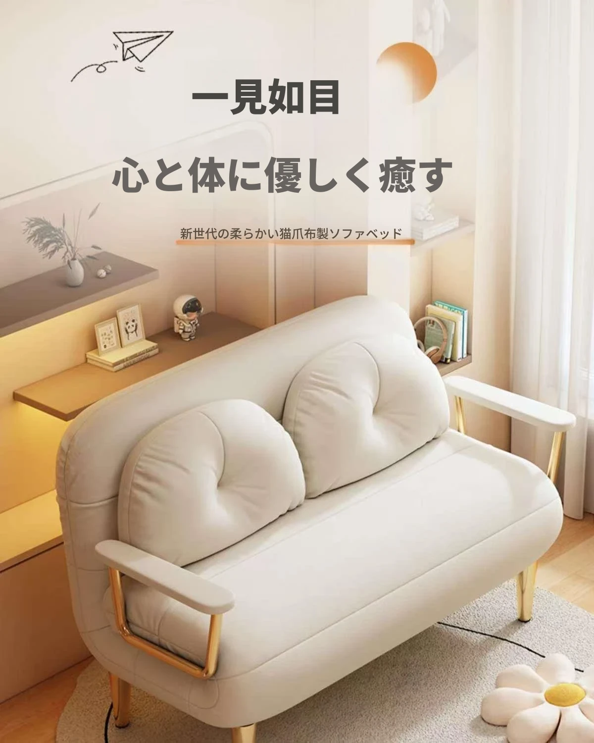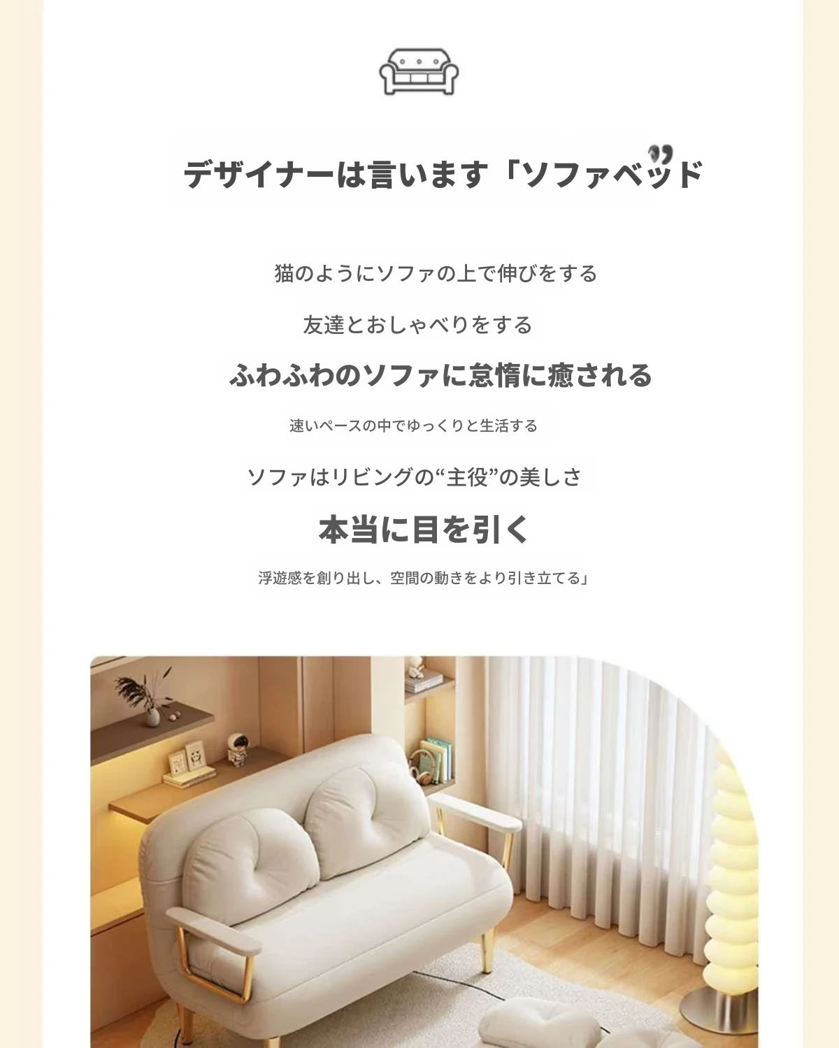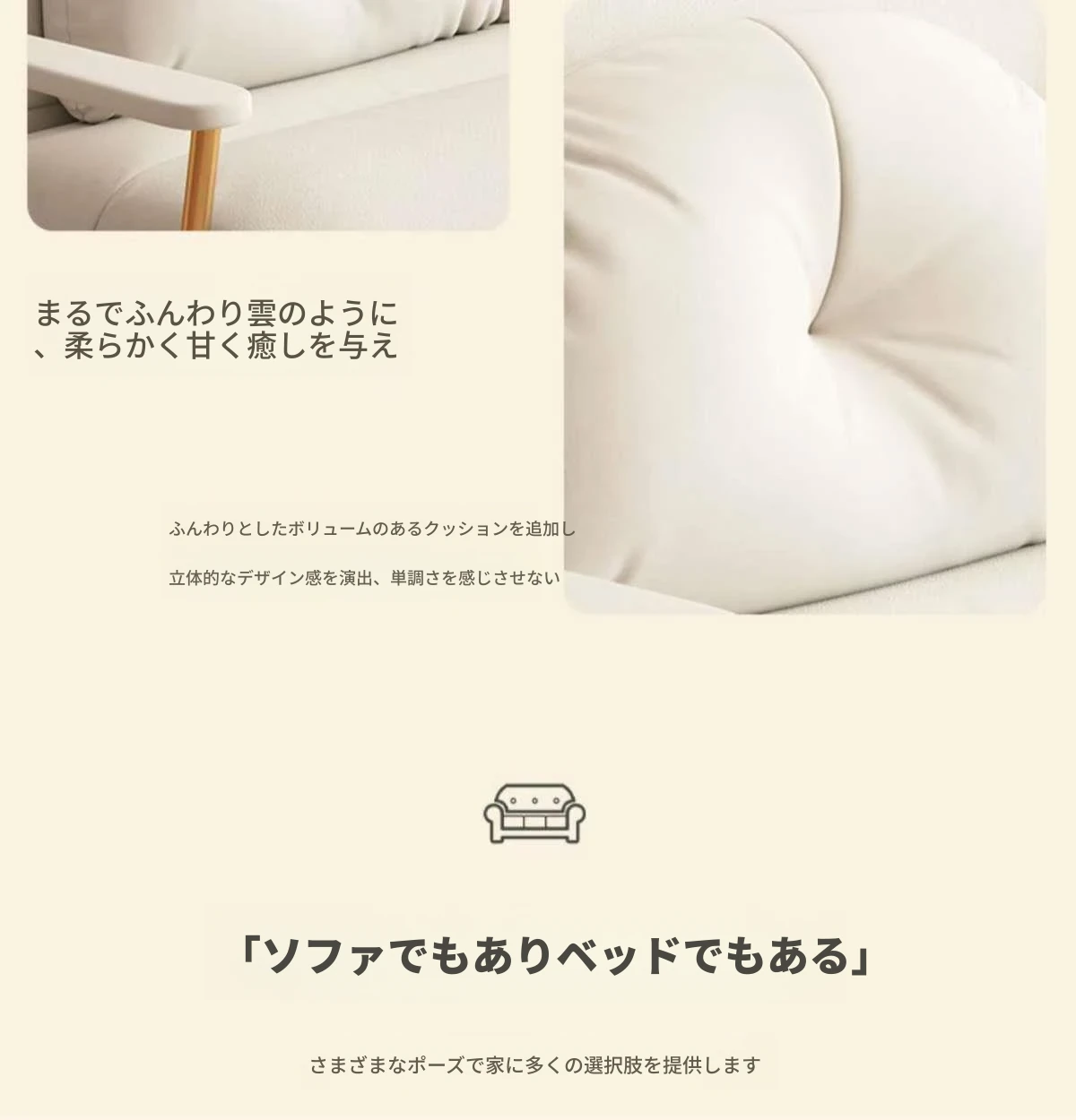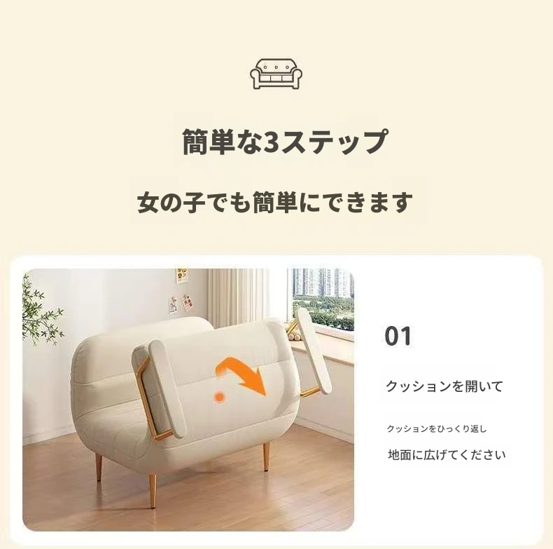 2WAY折りたたみソファベッド|一人用・小型住宅に最適|バルコニーやリビングにぴったり|多機能クラウドデザイン|寝て・くつろいで使えるシンプルスタイル!