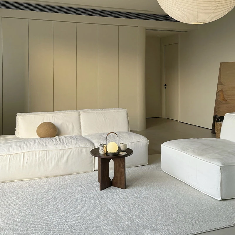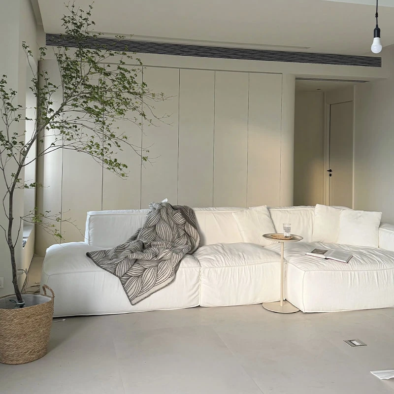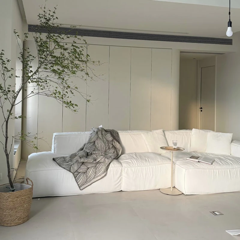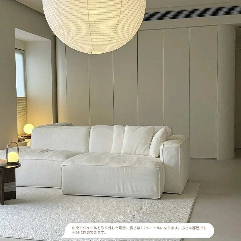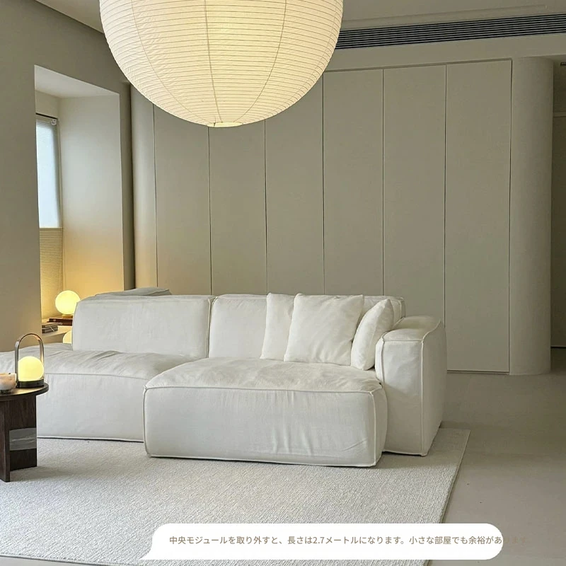 中古クリーム風モダン豆腐型ソファ フランス風リビング用 モジュール式洗えるリネン生地 ストレートデザインの貴妃ソファで、上品な空間を演出!快適さとスタイルを兼ね備えた一品。