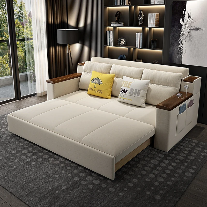 バレマ・イタリアンミニマリズム2025年新作!壁に寄せられる、伸縮自在の収納機能付き調整可能なマルチファンクションソファ。おしゃれなリビングにぴったりのアイテムです!
