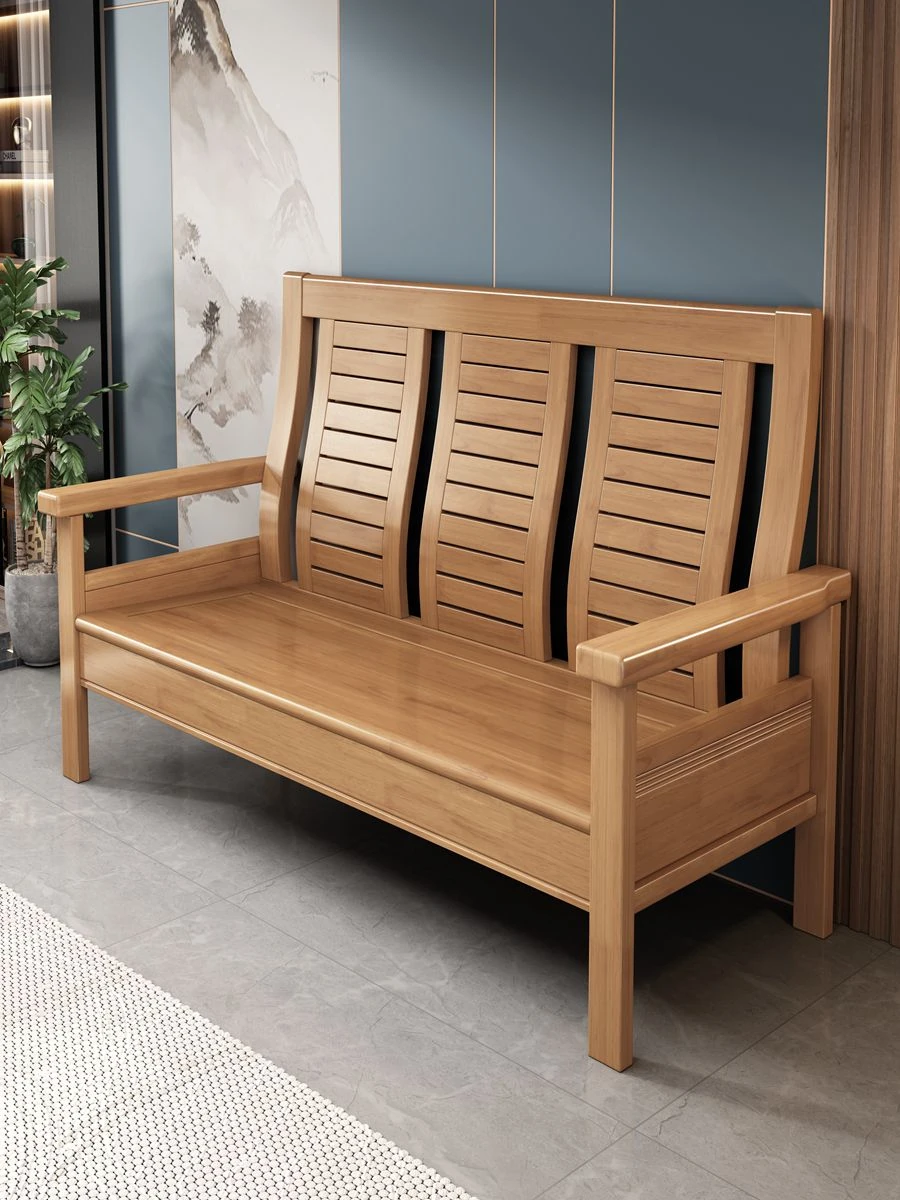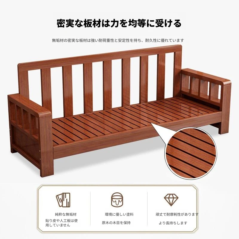 中華風全木製ソファセット - シンプルでモダンな小型リビングに最適!3人掛け、冬夏兼用の木製オフィス用ソファ。快適さとスタイルを両立した理想の家具です!