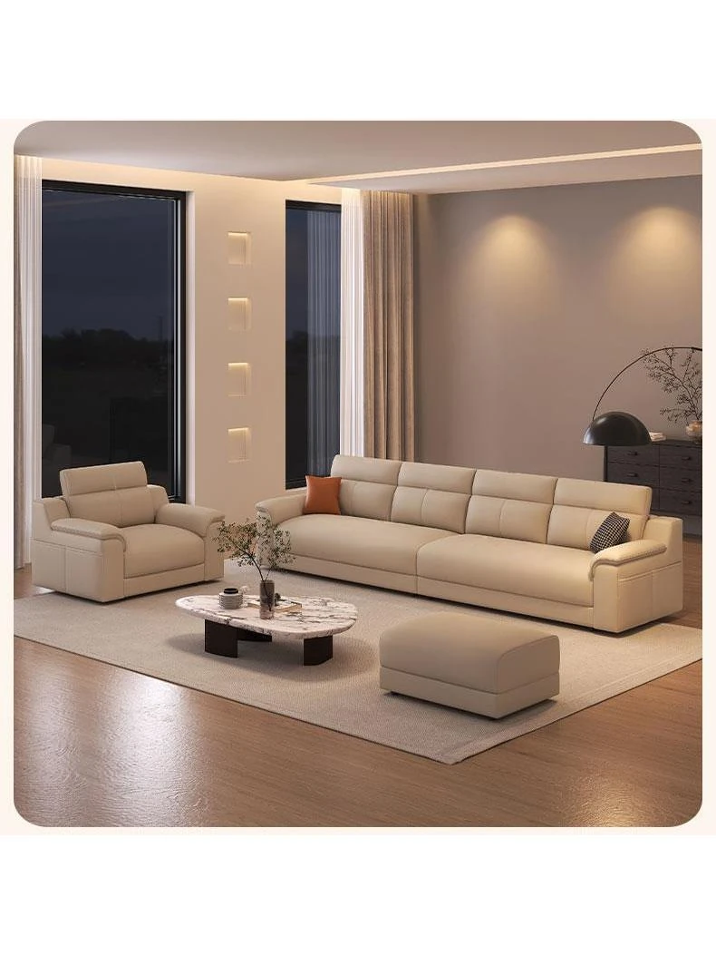 新作!本革使用のシンプルモダンイタリアンスタイルソファ - 猫の爪にも強い、リビングにぴったりの軽 luxe デザイン!全真皮仕様で高級感満点。あなたの家に洗練された美しさを。