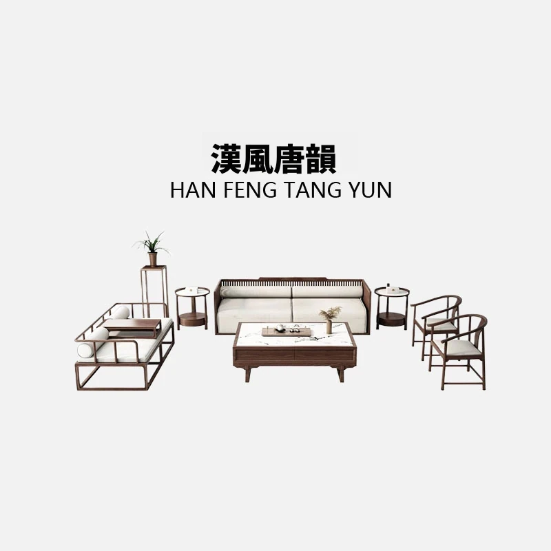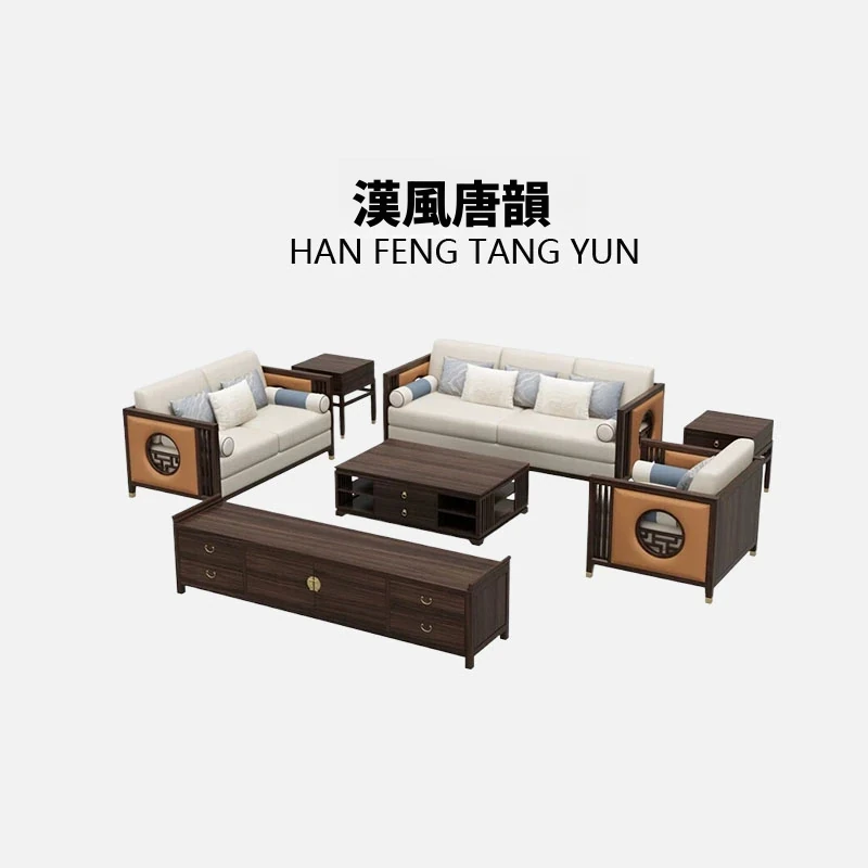 唐川の新しい中式デザインの全屋家具 - 高級感あふれる実木と布のコンビネーションソファ、シンプルでスタイリッシュなリビング空間を実現します!