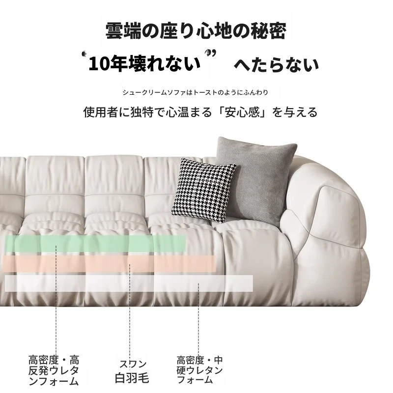 クリーム風のソファ、シンプルでモダンなデザイン。フレンチスタイルのプフで、3人、4人、5人掛けにも対応。貴妃スタイルの直線的なスクエア型、雲のような柔らかさを実現。快適な寝室にぴったりです!
