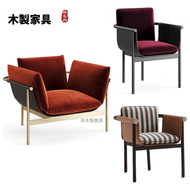 北欧モダンファブリック一人掛けソファチェア - シンプルなデザインで、リラックスできる背もたれ付き。家庭用やホテル、寝室に最適なソフトパッケージチェアで、心地よいくつろぎの時間をお届けします。