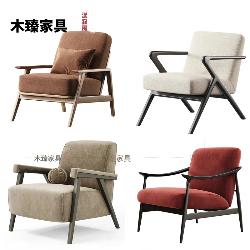 北欧スタイルのシンプルでモダンな無垢材ソファチェア - デザイナーによるミッドセンチュリー風のホテル・ラウンジ用リラックスチェア、エレガントなロビー会談用に最適!