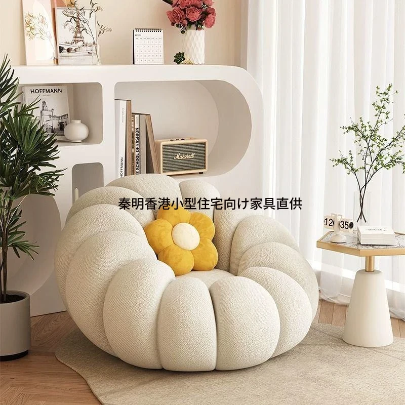 香港・マカオ直送!南瓜型リラックスチェア - 一人掛けソファ、クリーム風デザインの畳ソファ。狭いお部屋やバルコニーにぴったり!快適な座り心地で、あなたのリラックスタイムを演出します。