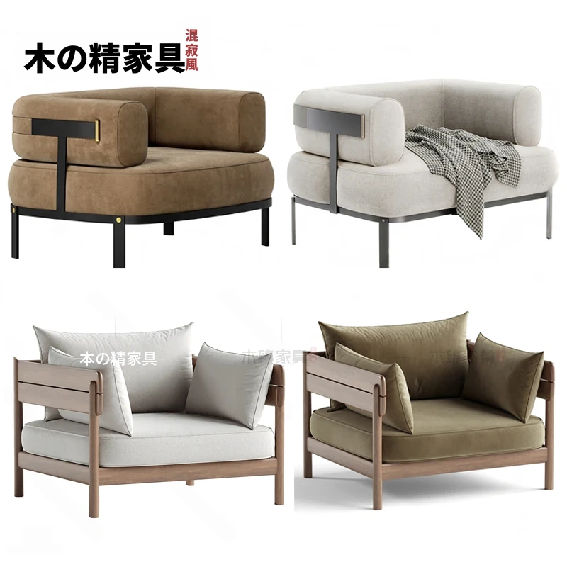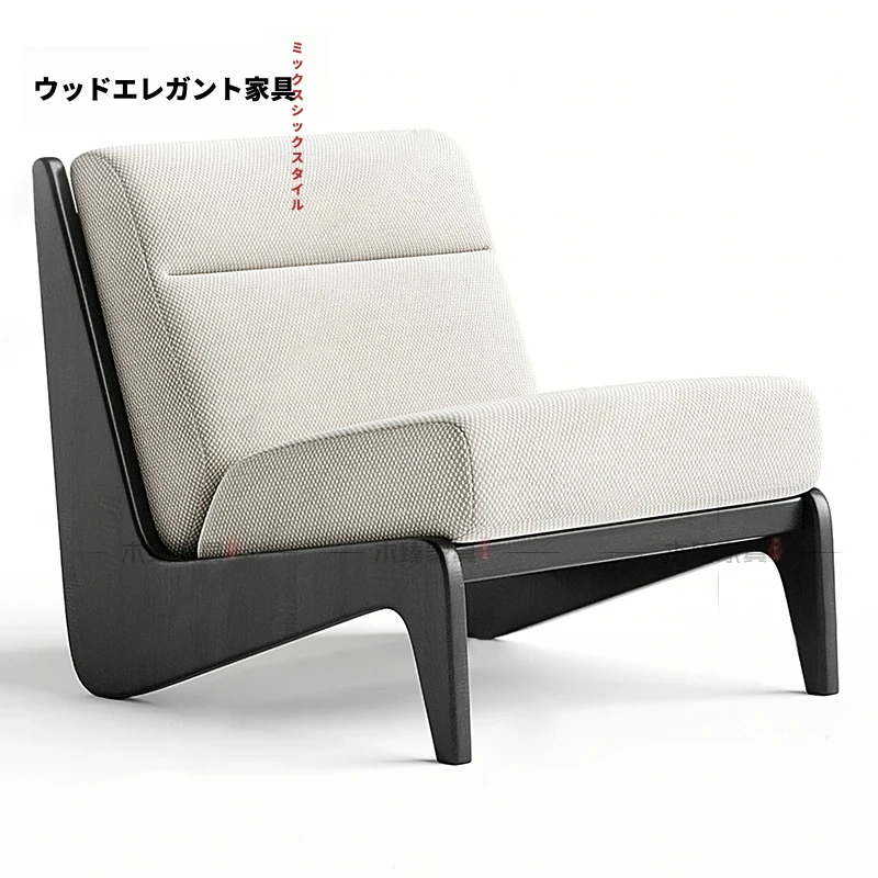 北欧風モダン無垢材ソファチェア|シンプルなデザインで、モデルルームやホテル客室、会所接待室に最適なリラクゼーションチェア!快適さとスタイルを兼ね備えた一品。