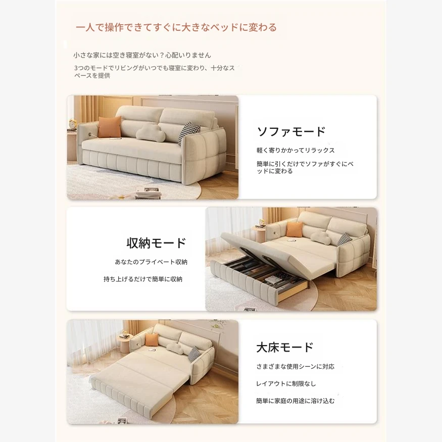 【香港送料無料】2024年新登場!実木製ソファベッド 多機能 コンパクトデザイン 小型住宅に最適なリビング一体型!おしゃれで機能的な空間を実現!