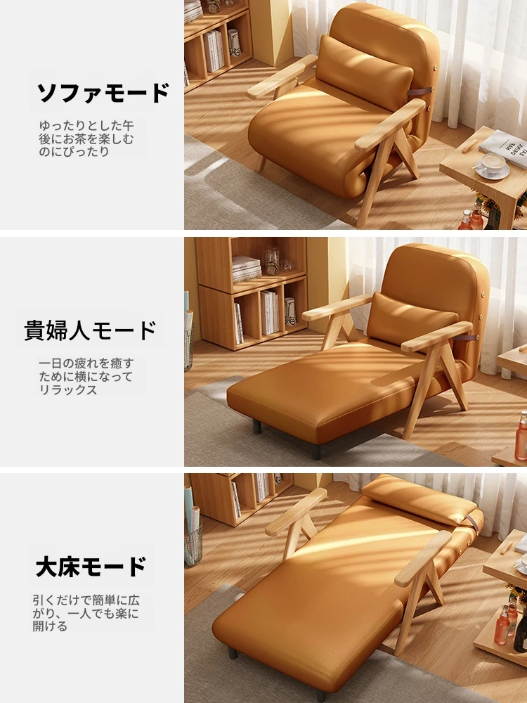 ムニンアンの新作!調節可能な折りたたみ式実木ソファベッド。リビングや小さな部屋にぴったりな収納機能付きで、座る・寝る両方に対応。快適な空間を演出します!